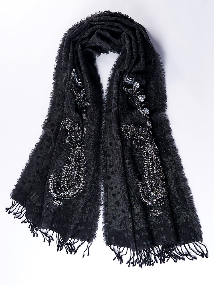 High-end Hand-embroidered Beaded Boiled Wool Shawl Autumn And Winter Warm Scarf Nepal Imported Classic Wild