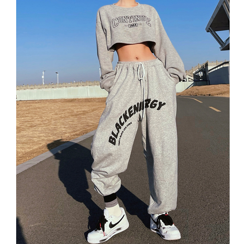 High Waist, Thin, Straight, Beamed Feet, Letter Print, Hip-hop Street Dance -