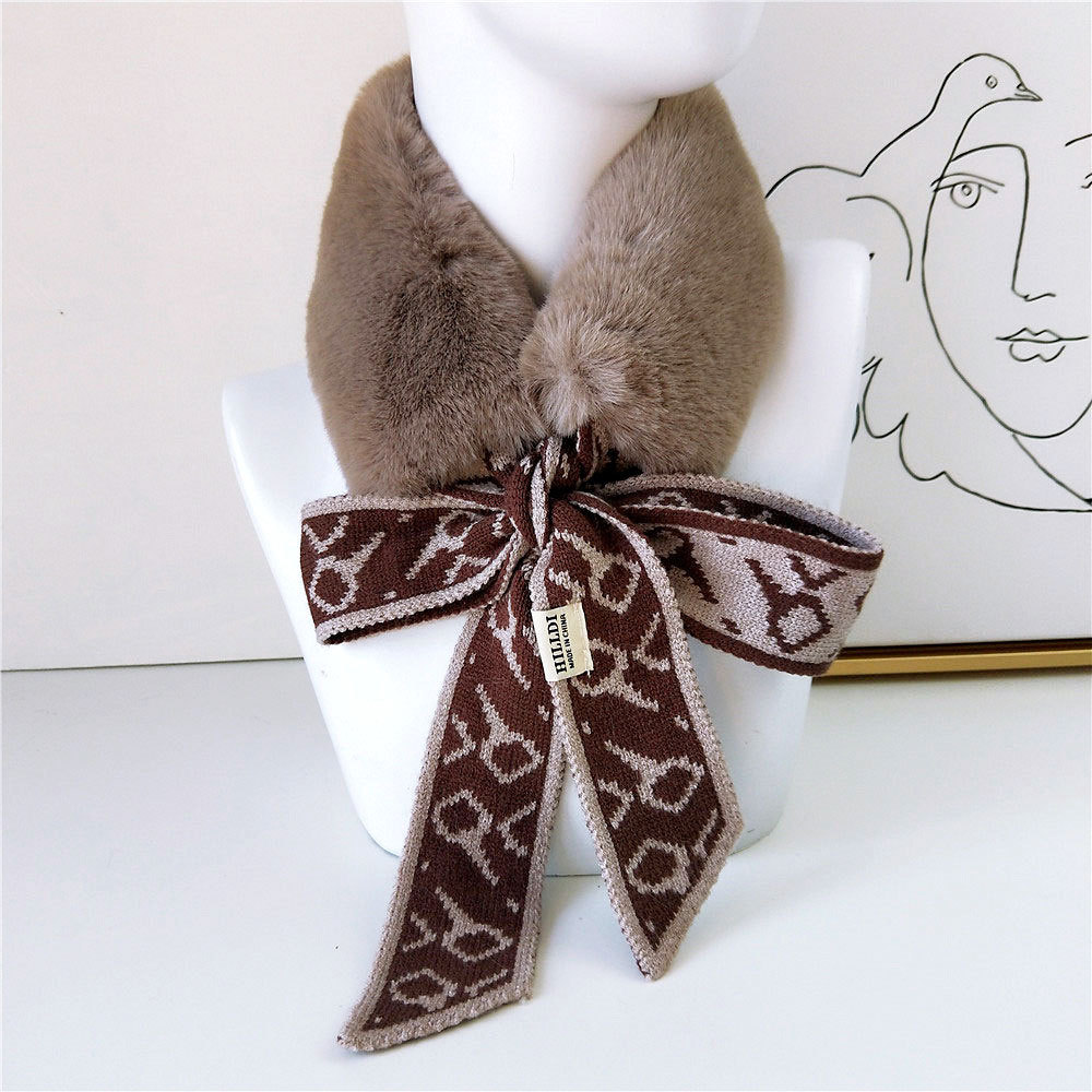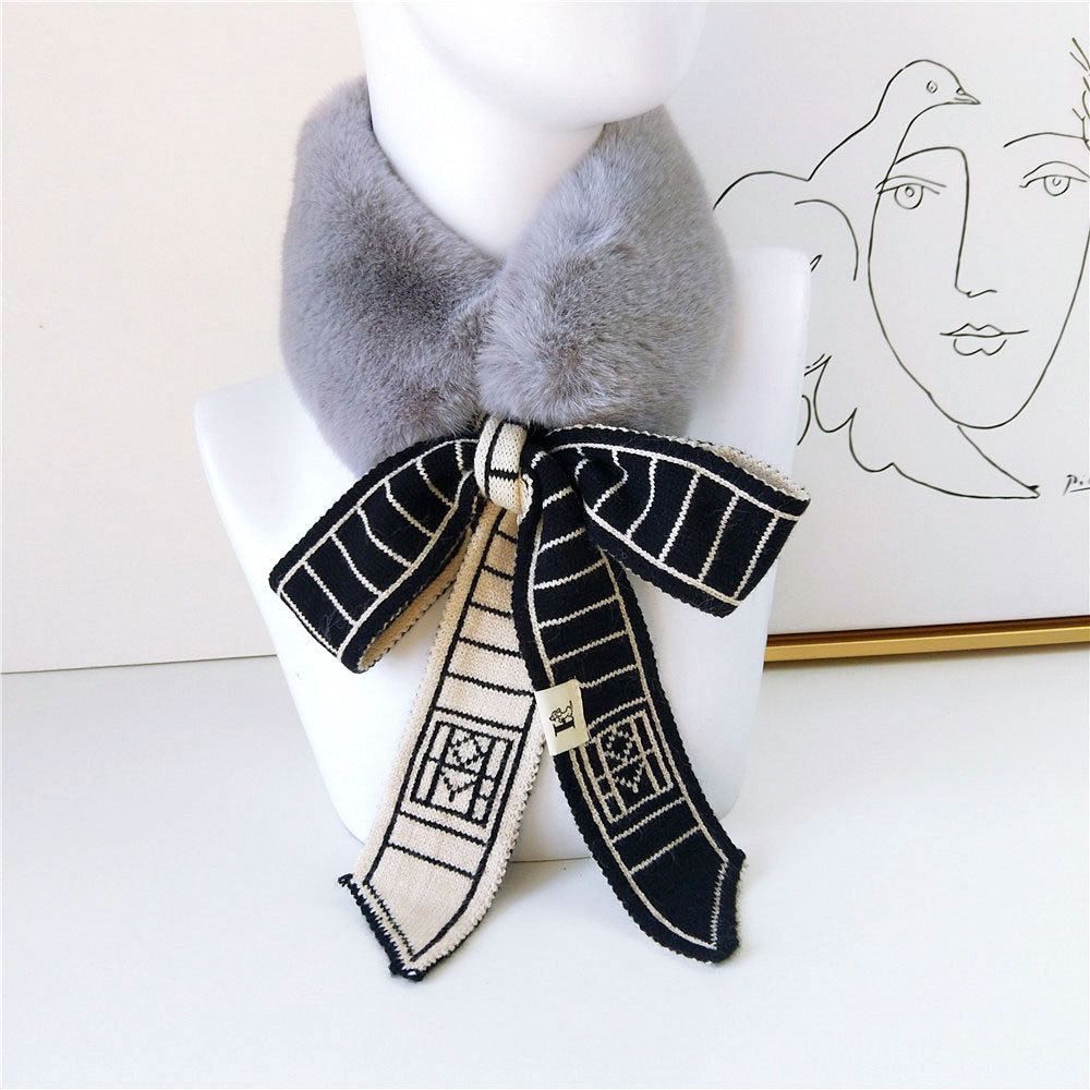 Houndstooth Fur Collar Scarf Women's Korean-style Plush Scarf Winter Warm Thickened Women's Scarf
