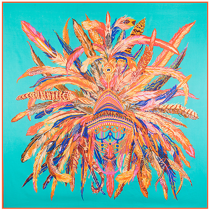 Indian Feather Crown Ladies Faux Silk Scarf -