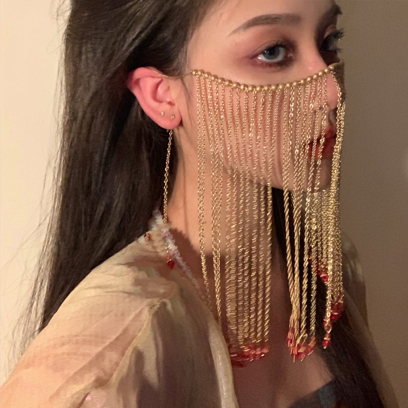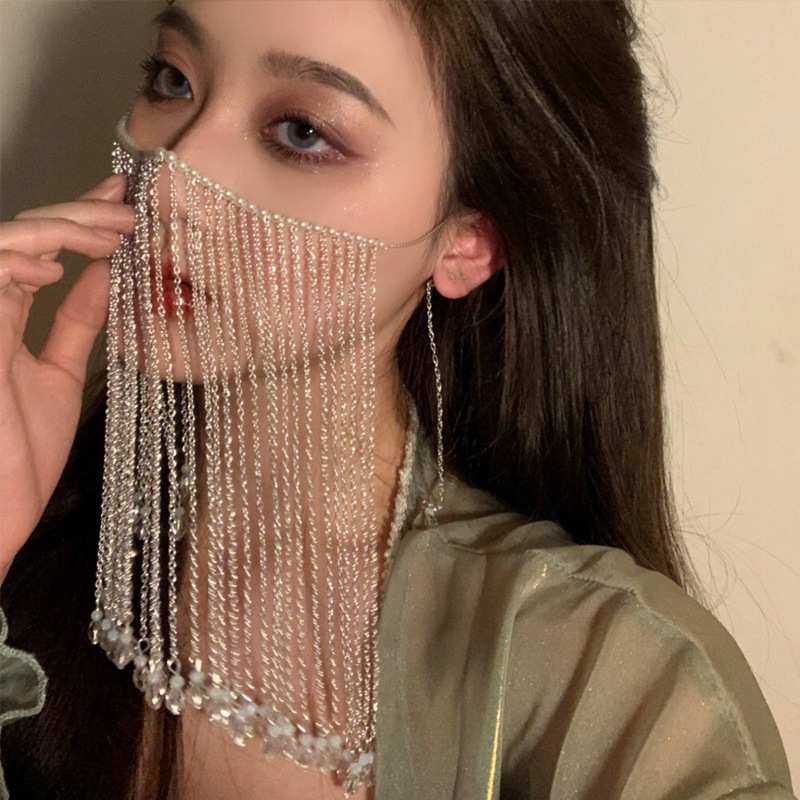 Ins Wind Retro Exotic Princess Temperament Pearl Drop Fringe Hair Accessory -