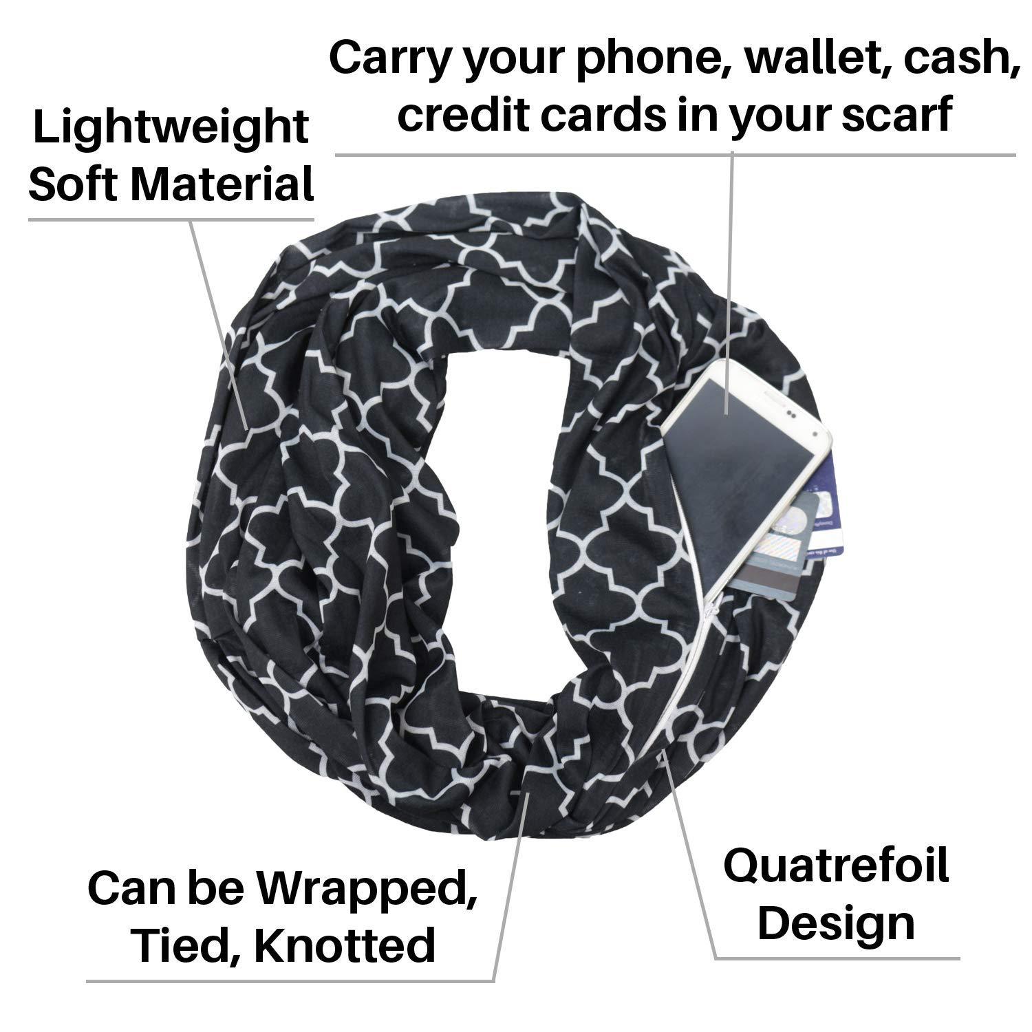 Knitted Infinite Zipper Pocket Scarf Four Petal Flower Print Bib
