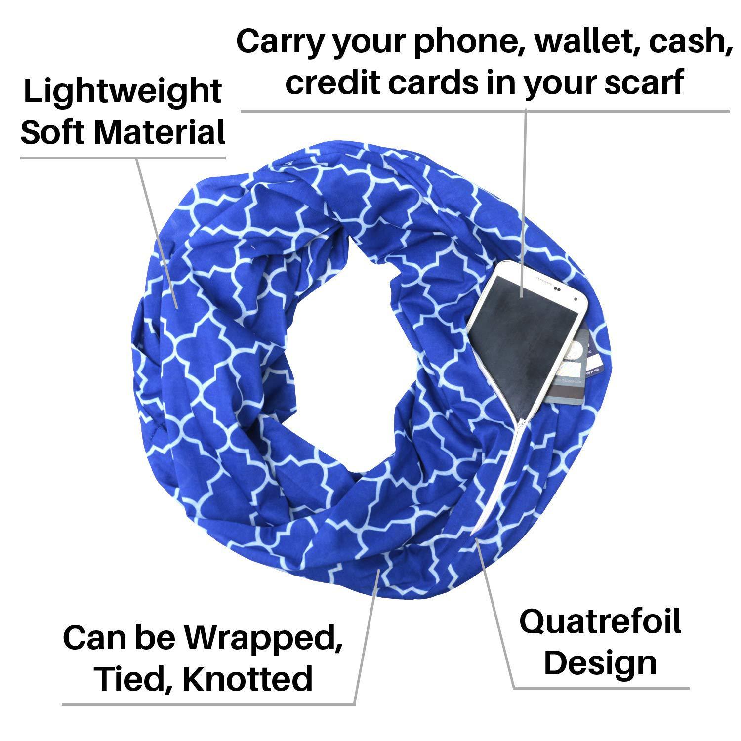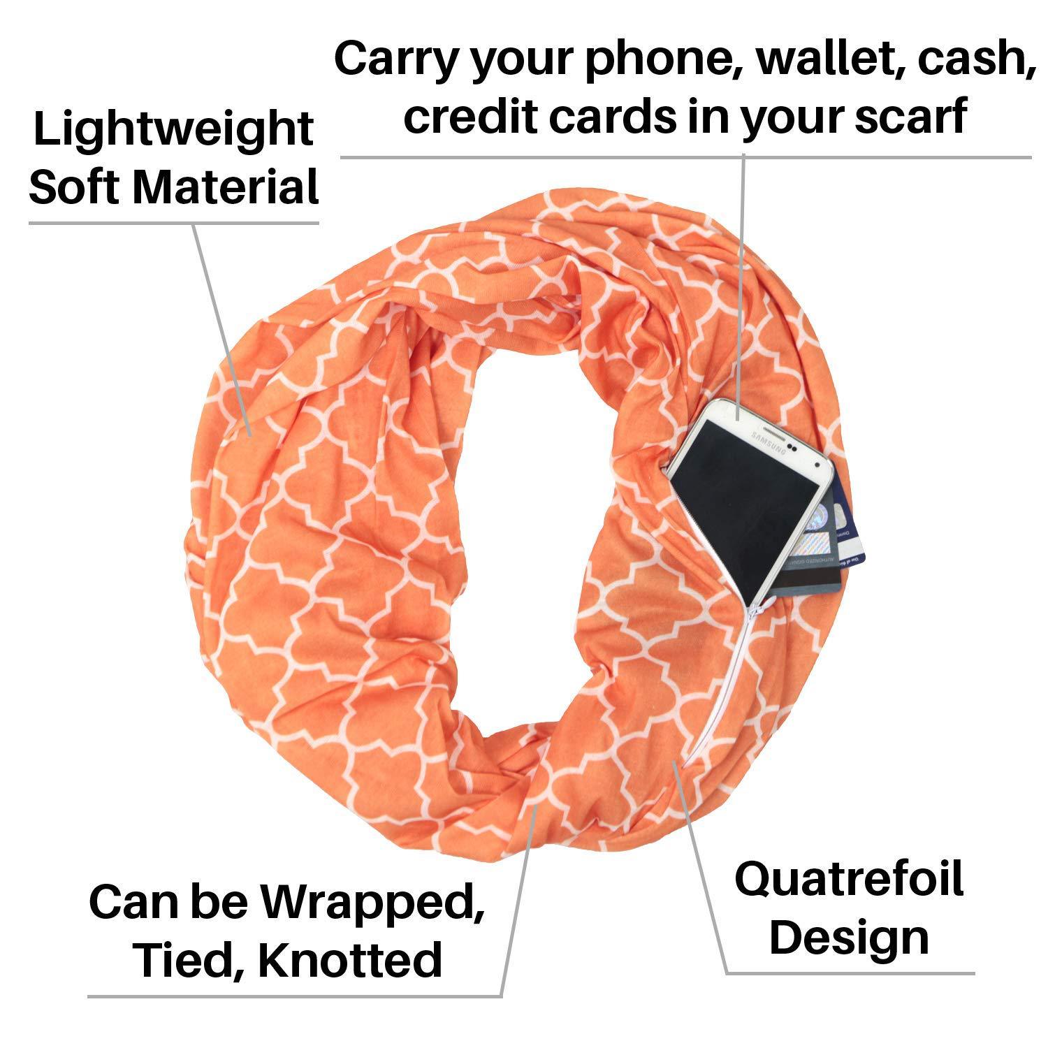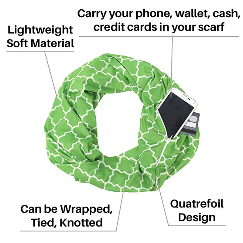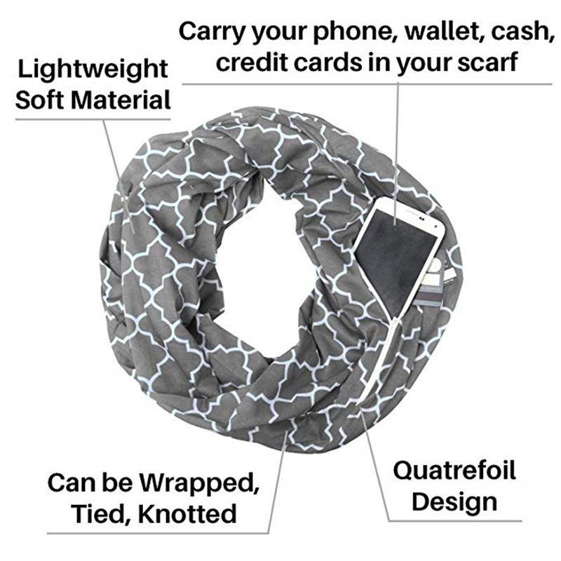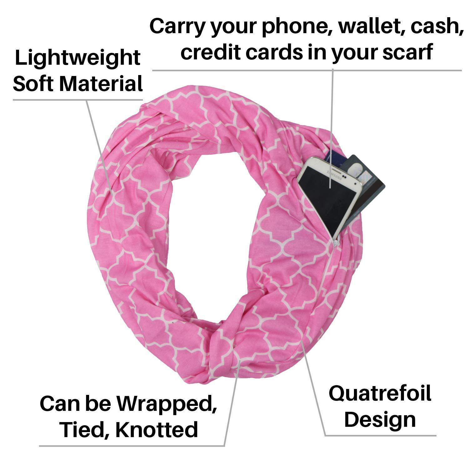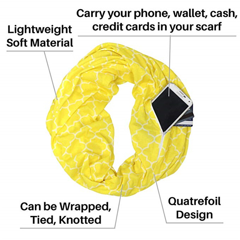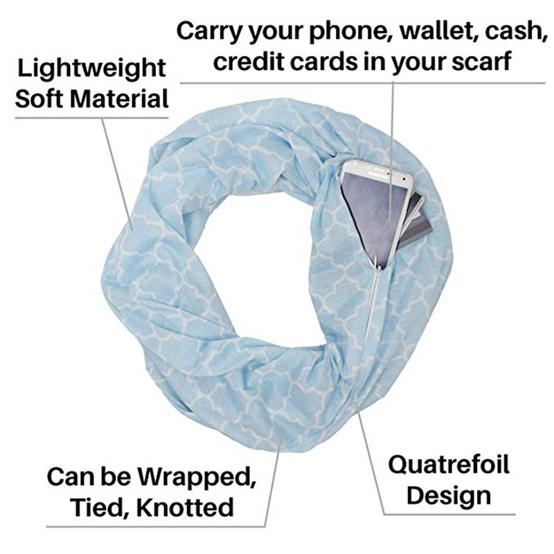 Knitted Infinite Zipper Pocket Scarf Four Petal Flower Print Bib -