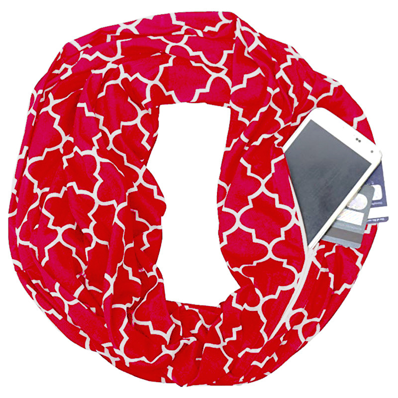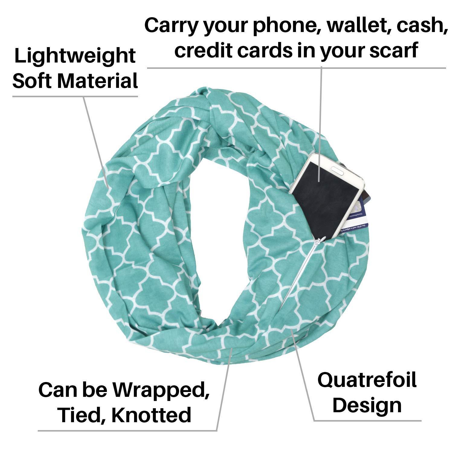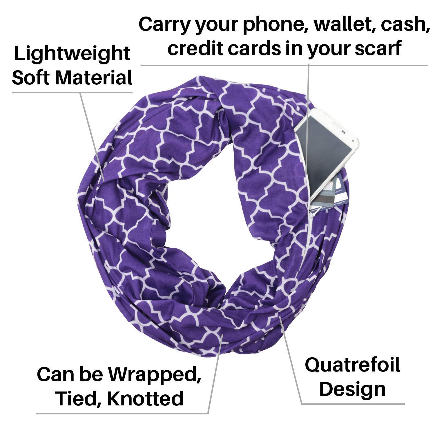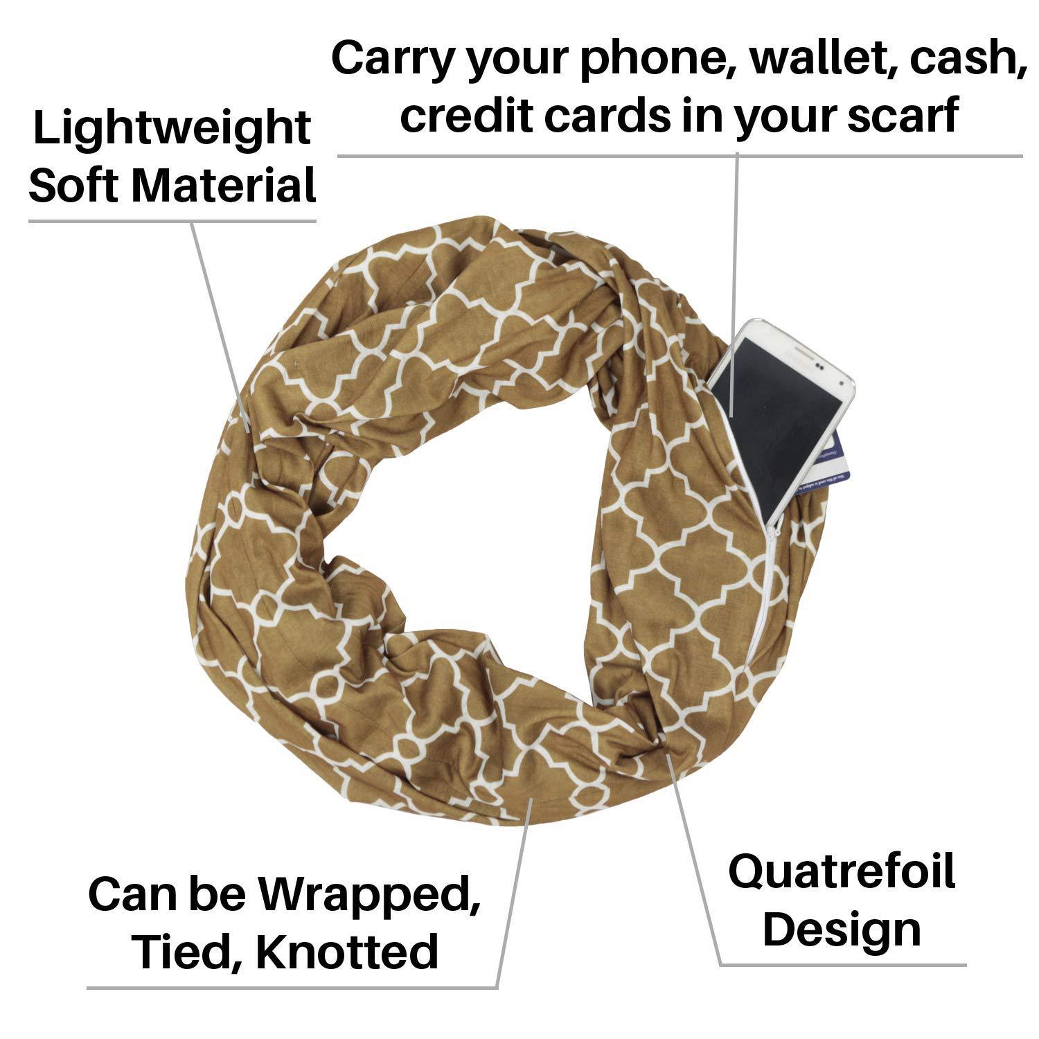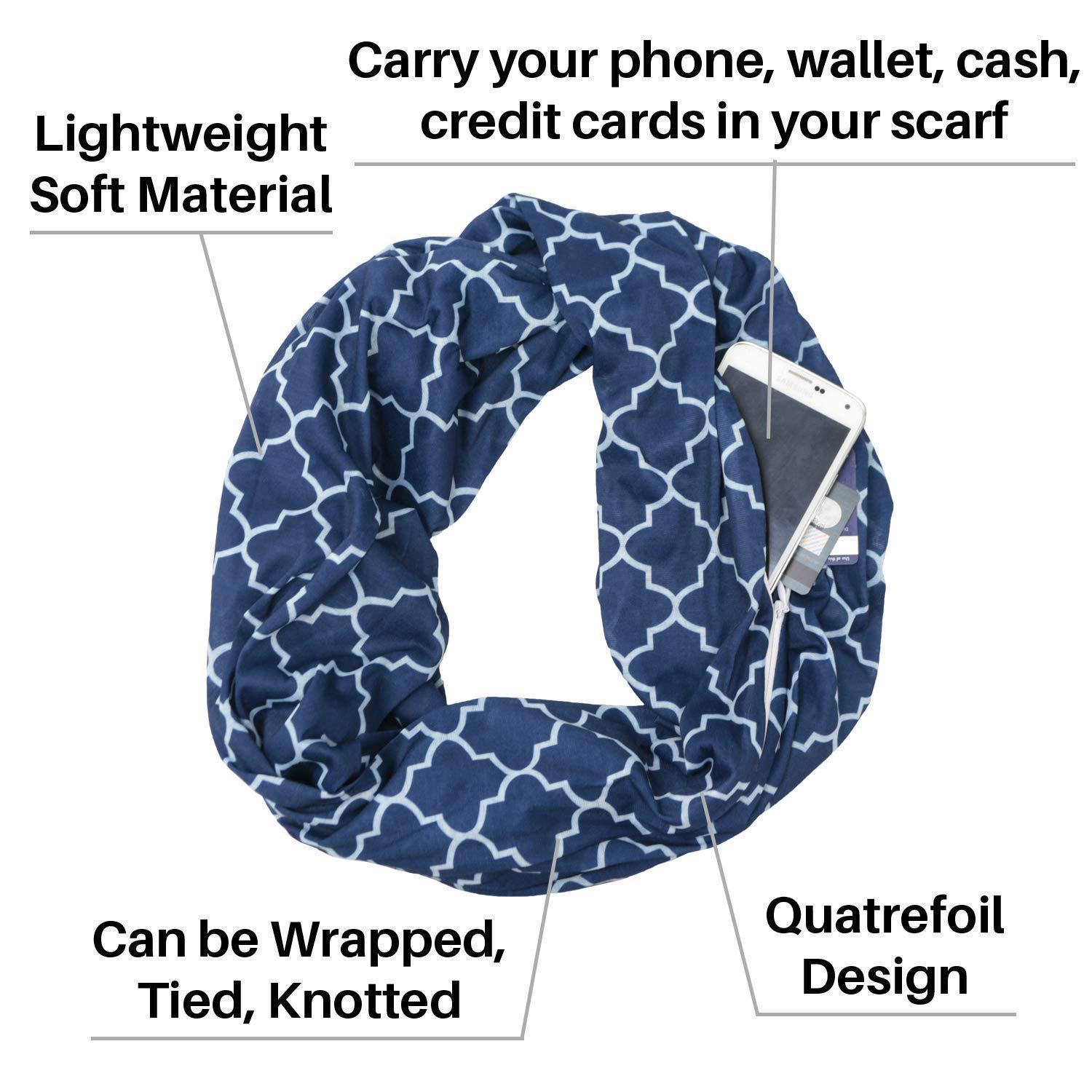 Knitted Infinite Zipper Pocket Scarf Four Petal Flower Print Bib -