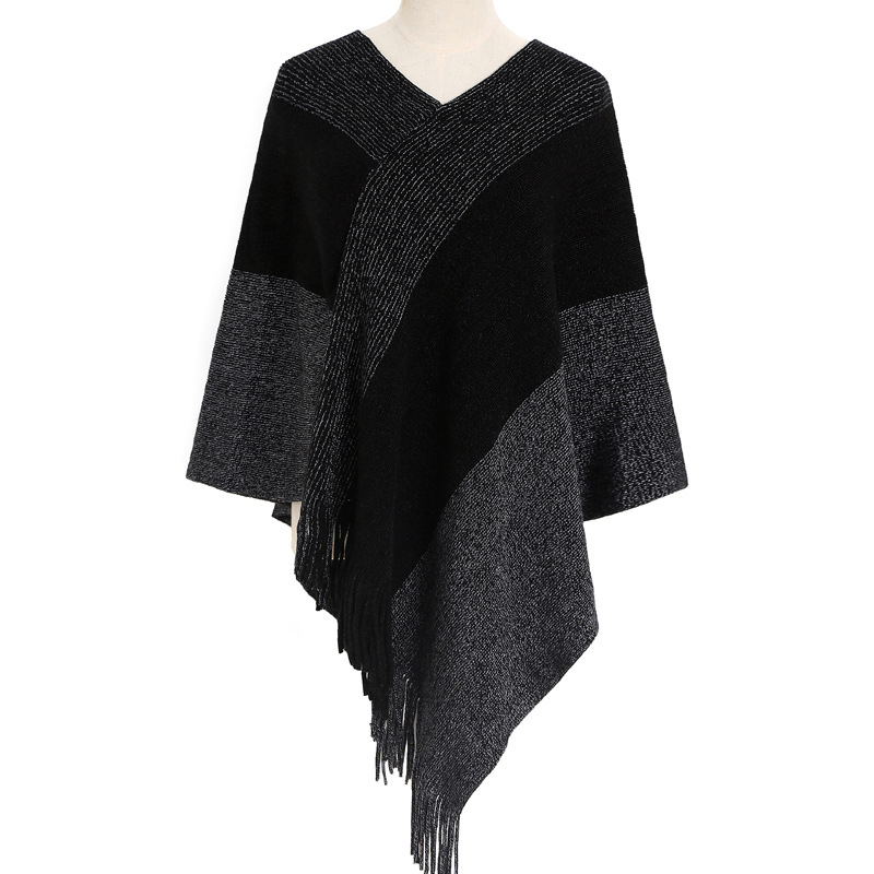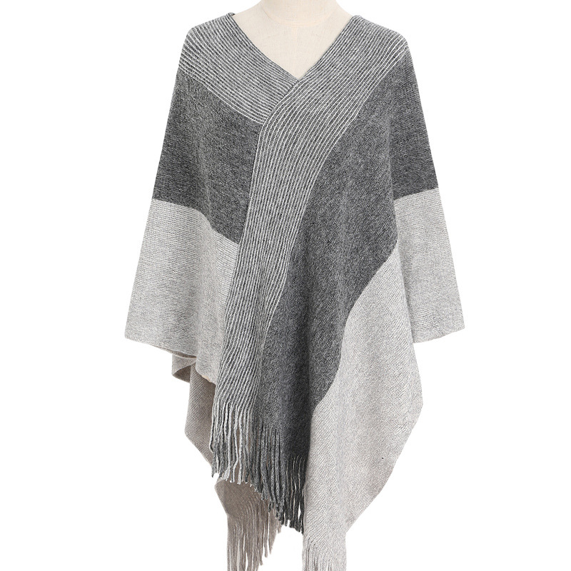 Knitted Shawl Cape Warm Tassel Cloak -