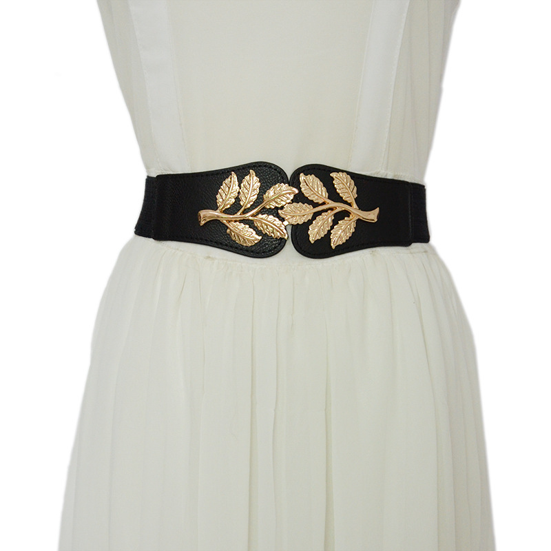 Ladies Allmatch Decorative Leaf Elastic Elastic Waistband