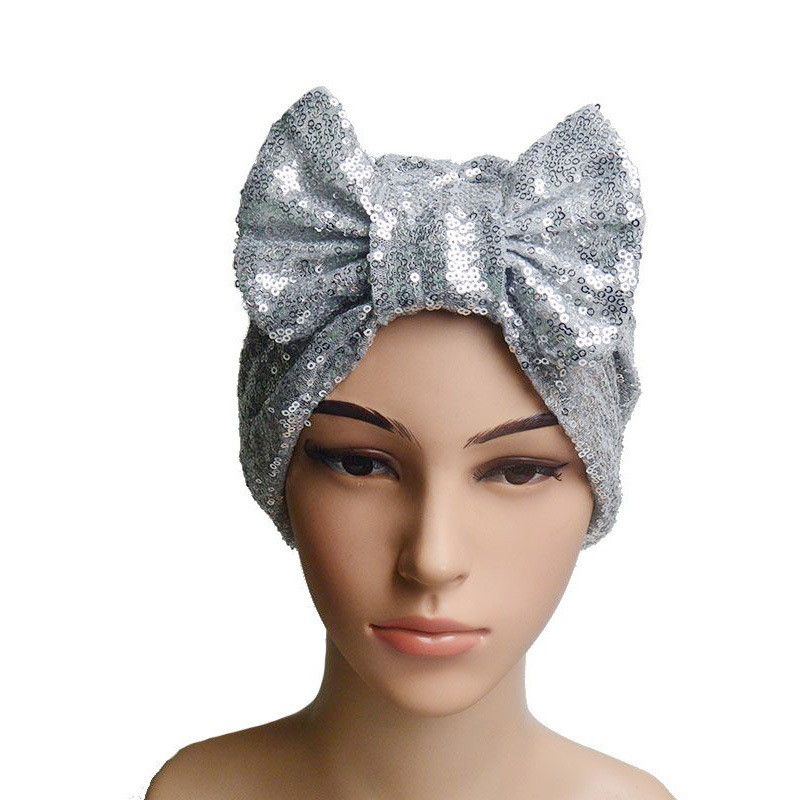 Ladies Fashion New Sequin Bow Bandana Hat