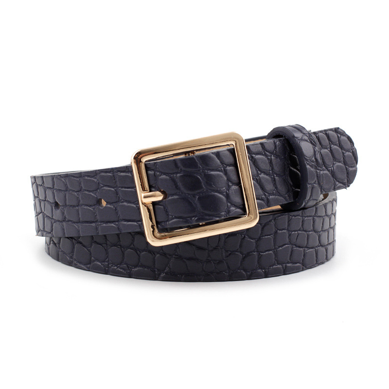 Ladies Square Button Jeans Dress Faux Leather Belt