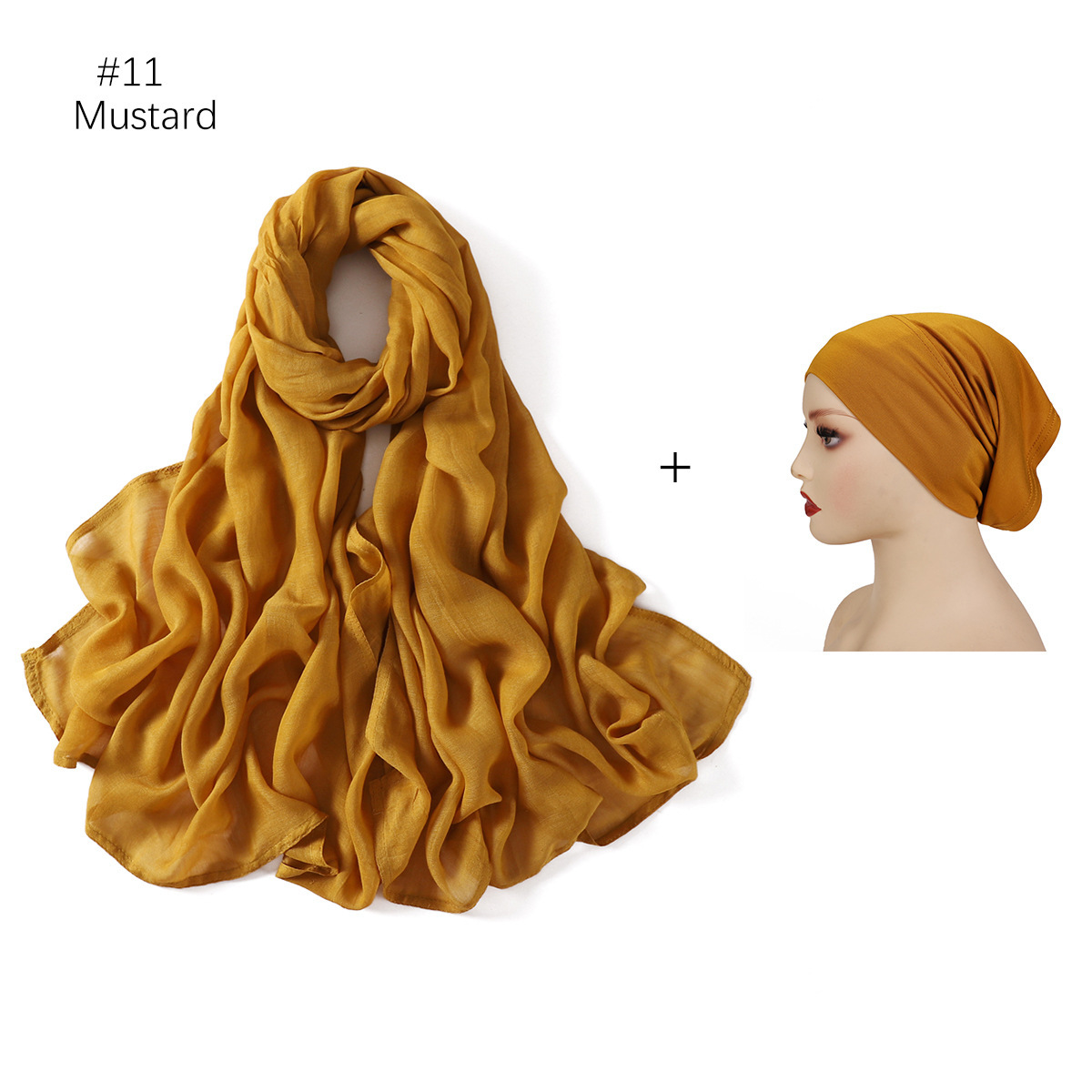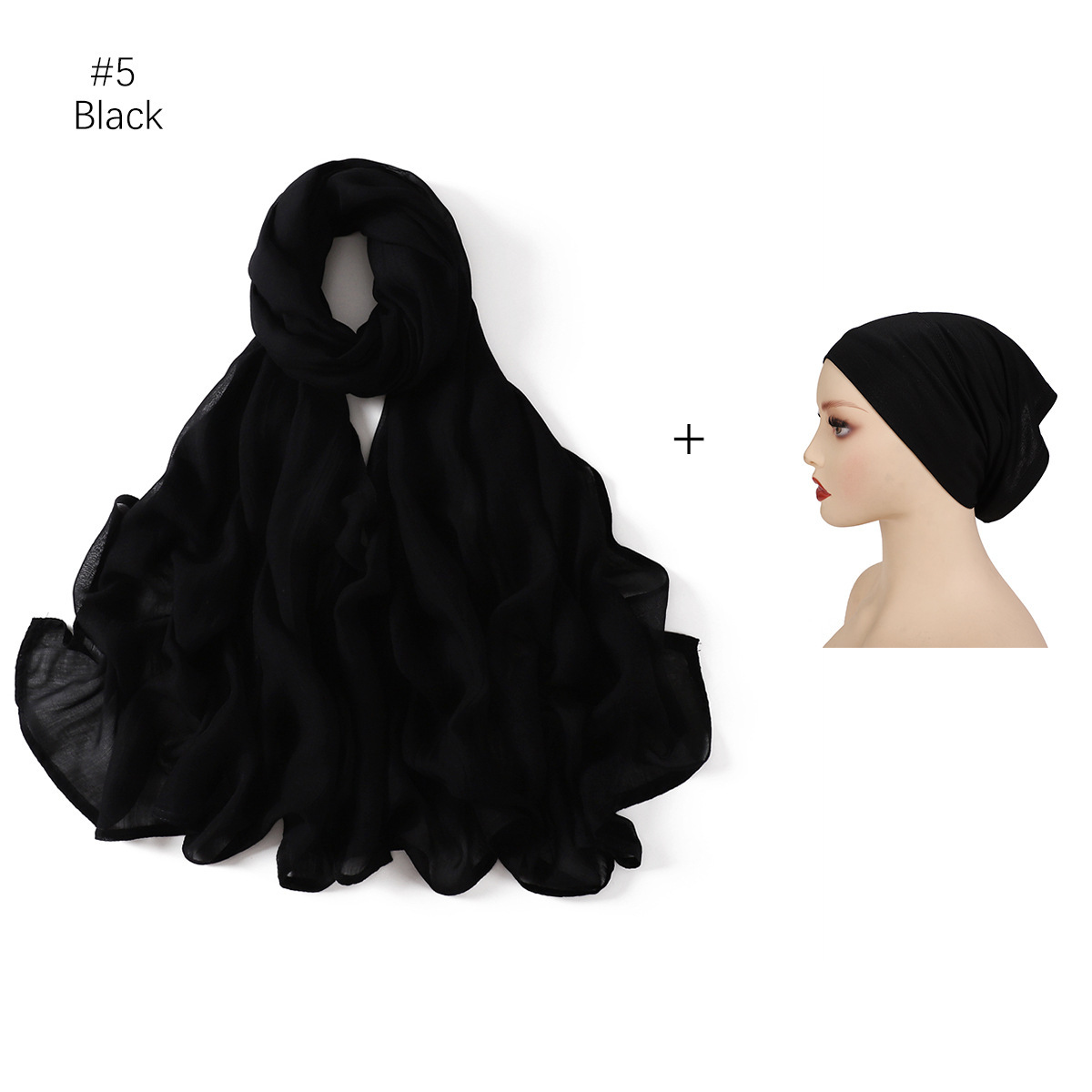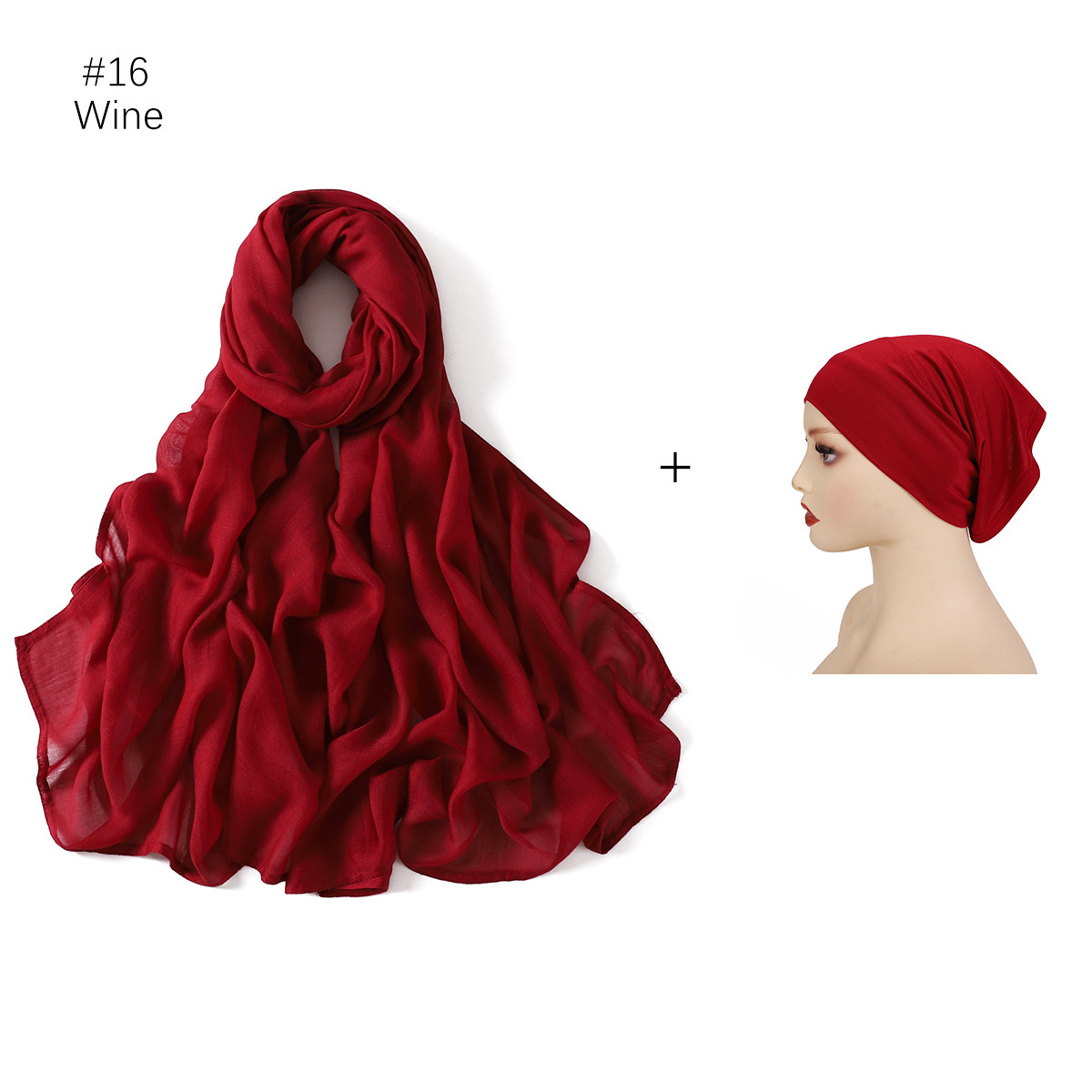 Large Size Scarf Bottoming Hood Same Color Wide Edge Smoke Pipe Cap Combination Set