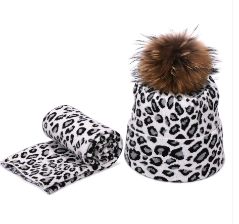 Leopard Spotted Knitted Woolen Hat And Scarf Set