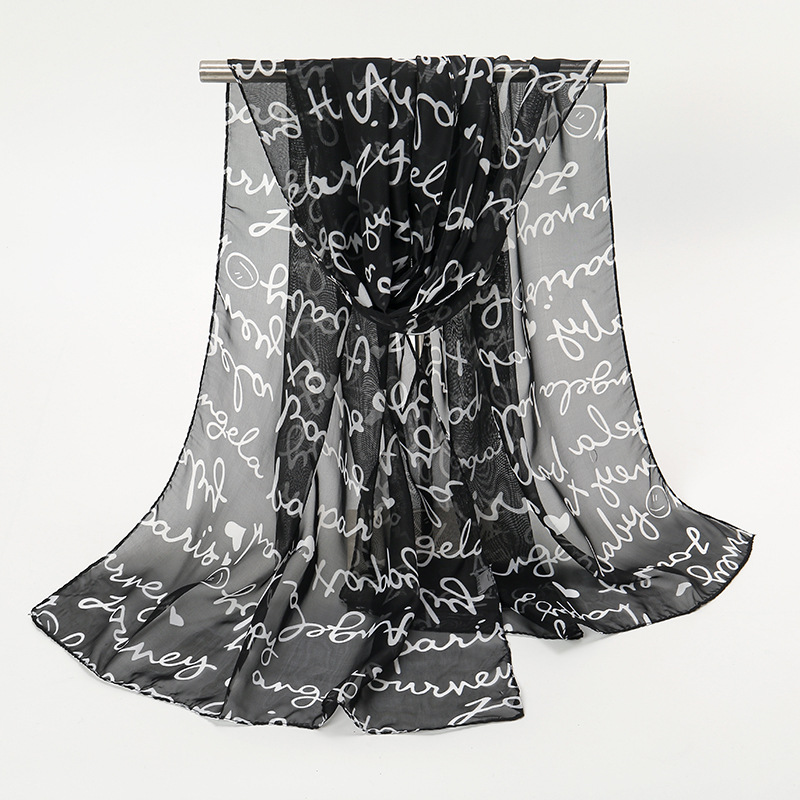 Letter Printing Small Silk Scarf Women's Chiffon -