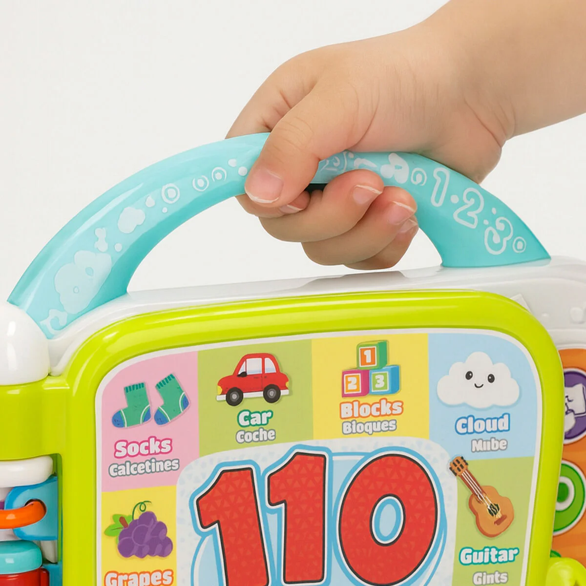 ¡Aprender nunca fue tan divertido con el libro bilingüe interactivo Winfun! Diseñado para niños a partir de 12 meses, incluye 11 páginas coloridas e ilustradas con sonidos, melodías y actividades en español e inglés. Los peques descubrirán nuevas palabras de 10 categorías distintas como juguetes, ropa, mascotas o vehículos. Cuenta con 110 primeras palabras, más de 128 sonidos y melodías y 3 modos de juego (aprendizaje, preguntas y música) que convierten cada página en una nueva aventura. Ligero, portátil y con asa de agarre, es el juguete perfecto para estimular el lenguaje, la motricidad fina y la curiosidad desde los primeros años.