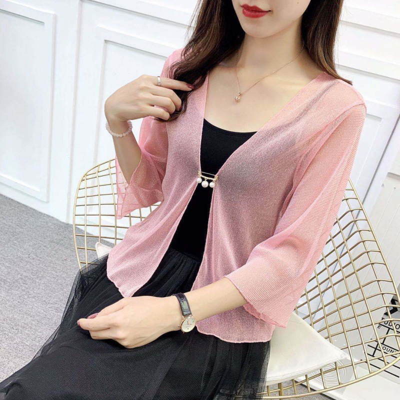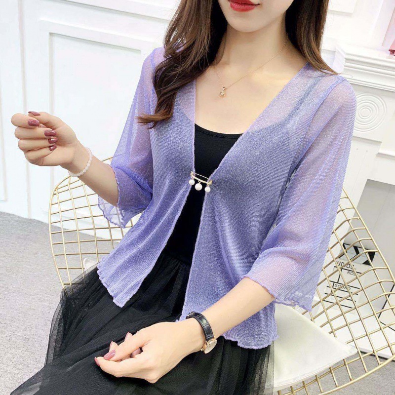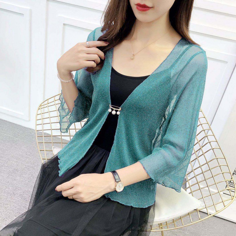 Lotus Leaf Sleeve Lace Small Outer Mesh Cardigan -
