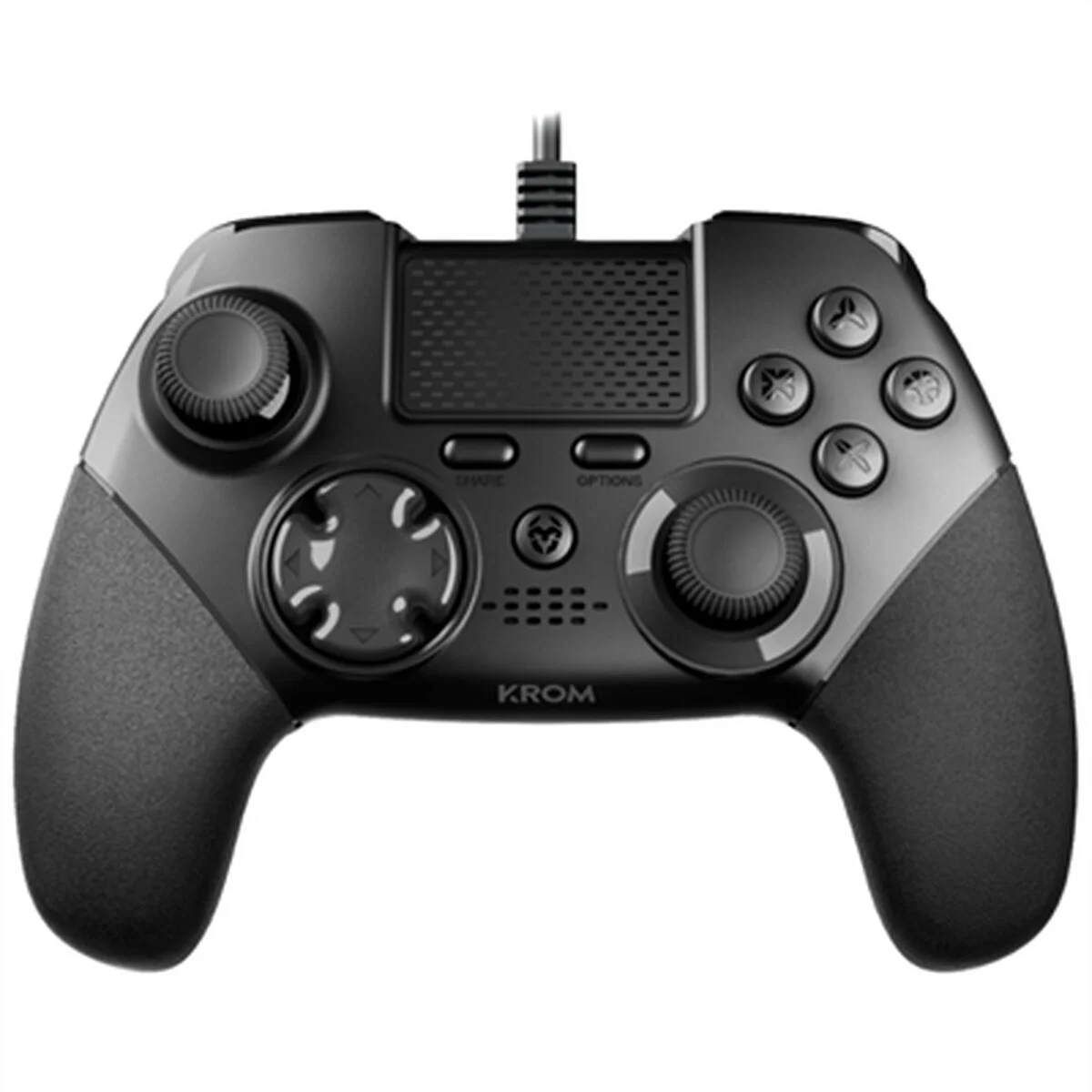 El mando gaming Kaiser de Krom es un dispositivo diseñado para ofrecer control y precisión en sesiones de juego intensas, compatible con las plataformas PC, PlayStation 4 y PlayStation 3. Con un diseño ergonómico en color negro, este gamepad se conecta mediante un cable USB de 3 metros de longitud, garantizando una conexión estable y baja latencia gracias a su tecnología alámbrica. Cuenta con 12 botones y 4 palancas traseras configurables, que permiten replicar las funciones de otros botones para personalizar la experiencia según el estilo de cada jugador, además de poder guardar hasta dos perfiles diferentes. Su tecnología de control combina funciones analógicas y digitales, e incorpora joysticks analógicos para un manejo preciso y fluido, junto con una superficie táctil integrada que amplía las opciones de interacción. Entre sus características destaca la inclusión de botones específicos para opciones y compartir, favoreciendo la facilidad de uso en juegos compatibles. Su construcción prioriza la ergonomía y la resistencia, con acabados texturizados en los agarres para ofrecer un mejor tactile y comodidad durante largas horas de juego sin fatiga, con dimensiones equilibradas de 154 mm de ancho, 110 mm de profundidad y 60 mm de altura, y un peso de 262 gramos que lo hace manejable sin resultar pesado. Asimismo, el Kaiser dispone de un altavoz integrado y un conector para auriculares estéreo, lo que permite escuchar efectos de sonido y comunicaciones de manera directa y privada desde el propio mando. Su interfaz USB facilita la conexión plug and play, sin necesidad de configuraciones complejas, permitiendo que el jugador se concentre en la competición con una respuesta inmediata. Este mando gaming se presenta como una solución robusta y versátil para jugadores que buscan precisión, personalización y comodidad en un equipo cableado, ideal para competir en distintos entornos y dispositivos.