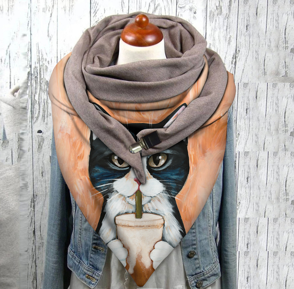 Men's And Women's Fashion Simple Cat Printing Scarf -