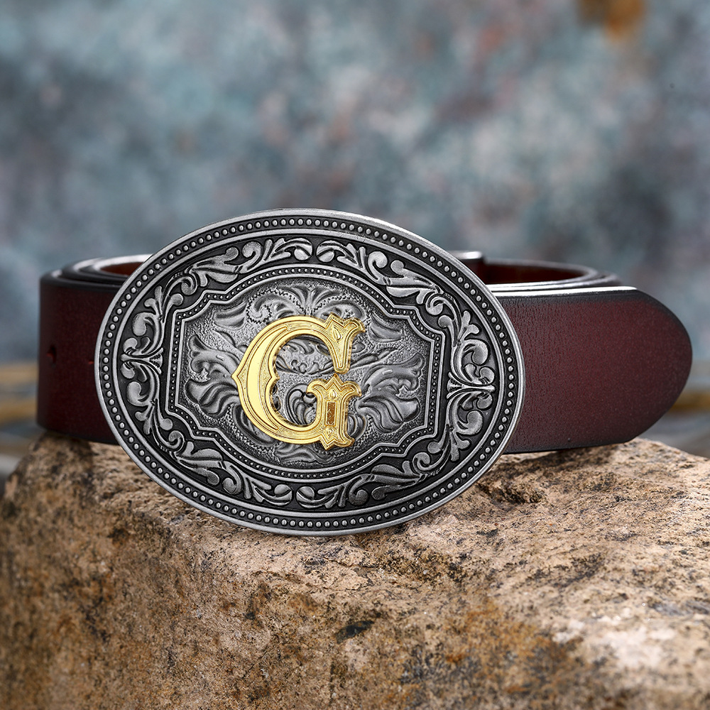 Men's And Women's Floral Letter Buckle Belts -
