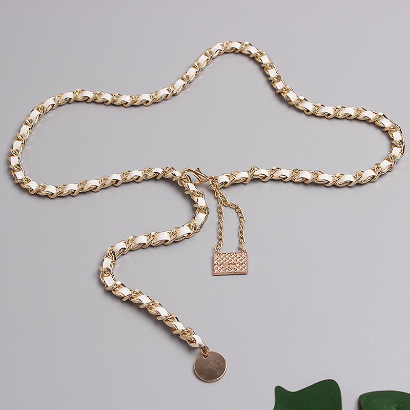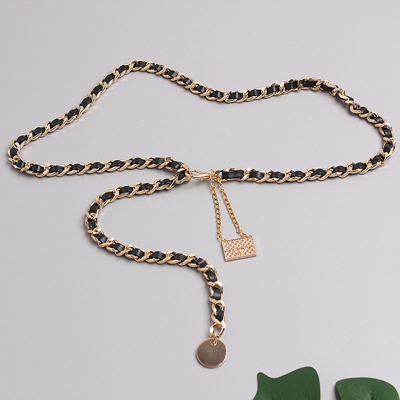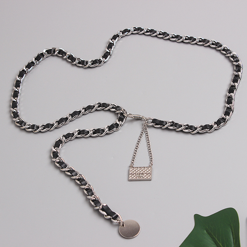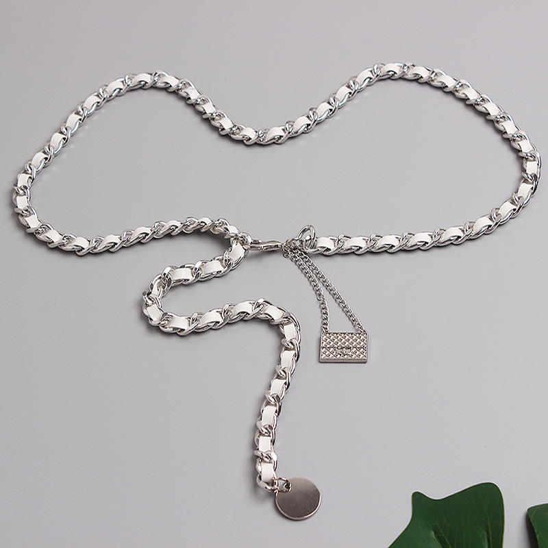 Metal Leather Braided Chain Mini Pendant Waist