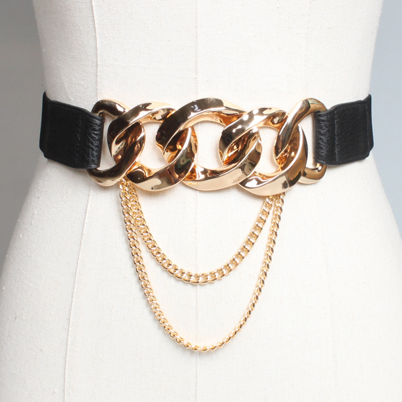 Metal Thick Chain Ladies Girdle, Trendy Matching Skirt Waist, Decoration Punk Belt Black