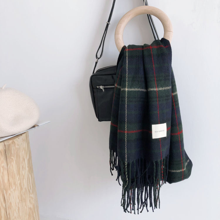 Mid-length Cashmere Scarf With Retro Checkered Plaid