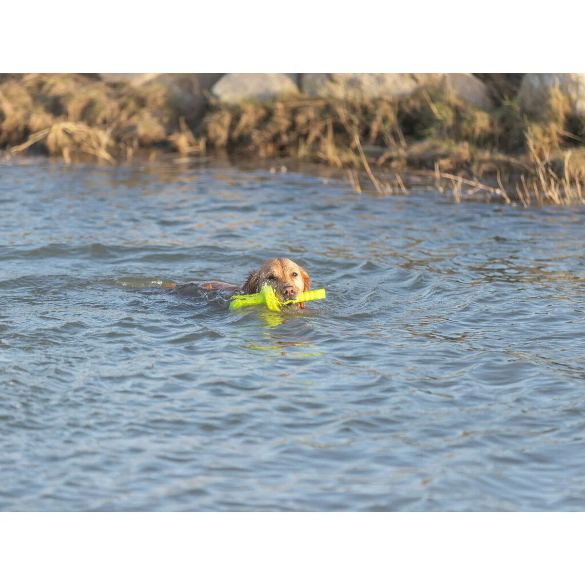 El mordedor de perro de la marca Trixie está diseñado especialmente para ofrecer una experiencia duradera y funcional en el juego acuático con perros. Fabricado en poliuretano resistente, con un núcleo de metal, combina robustez y ligereza para garantizar su flotabilidad completa, permitiendo que el juguete se mantenga siempre sobre la superficie del agua, lo que facilita tanto su localización visual como su agarre por parte del animal. Con una longitud aproximada de 29 cm, su forma ergonómica y moderna está concebida para proporcionar un agarre óptimo, permitiendo lanzamientos a gran distancia y estimulando actividades de recuperación que fomentan la actividad física y el vínculo entre la mascota y su dueño. Este mordedor, desarrollado bajo la supervisión del Prof. Ekard Lind, representa una opción fiable y funcional para juegos acuáticos, destacándose por su materialidad de alta resistencia y diseño pensado específicamente para perros activos que disfrutan tanto en tierra como en el agua. Debido a cambios recientes en su coloración, es posible recibir cualquiera de las versiones disponibles hasta que se regularice el stock con el nuevo tono. En resumen, este mordedor de Trixie es un accesorio práctico y especializado que combina durabilidad, visibilidad y comodidad de uso para el entretenimiento de perros en ambientes acuáticos.