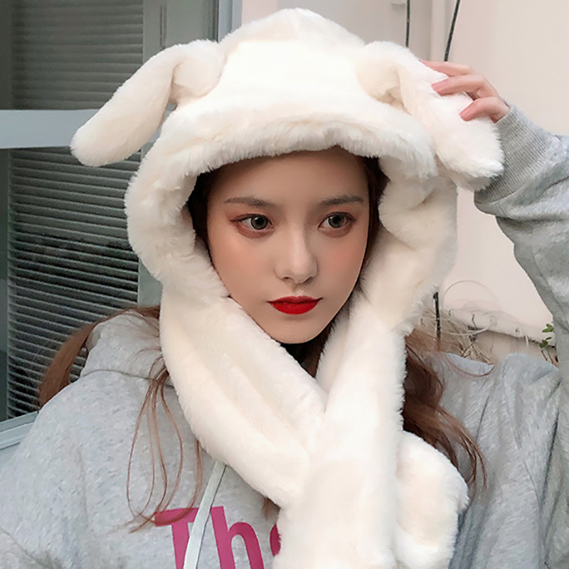 Moving Rabbit Ears Hat Female Autumn and Winter Cute Bear Scarf