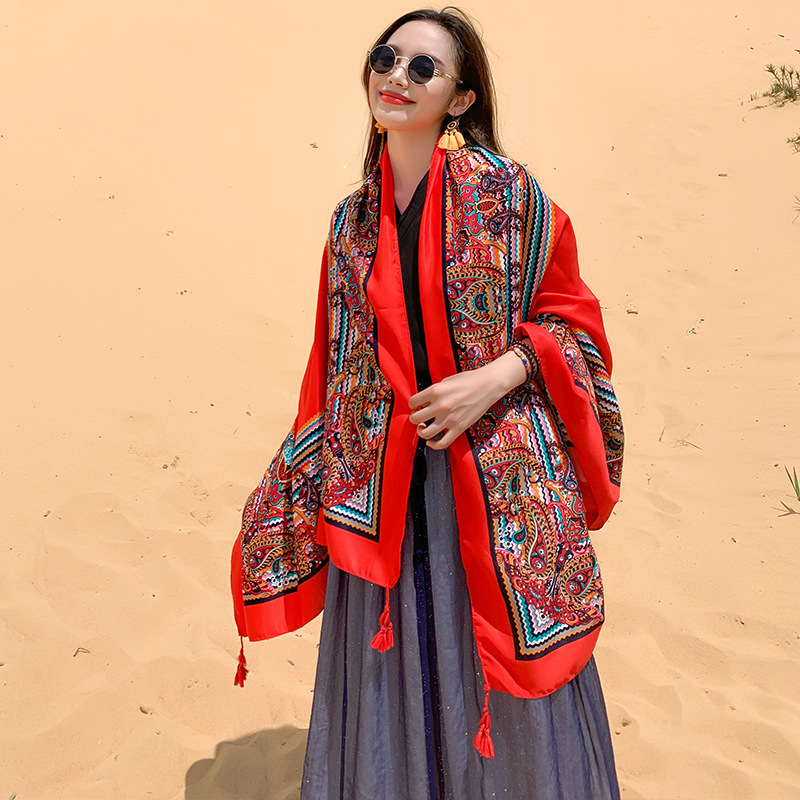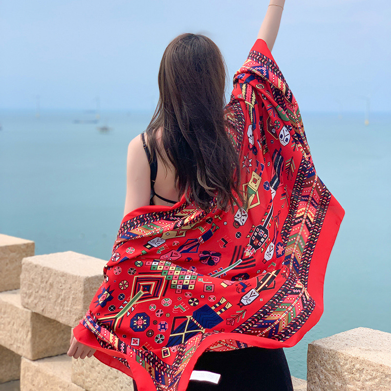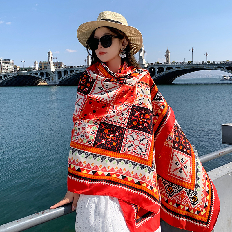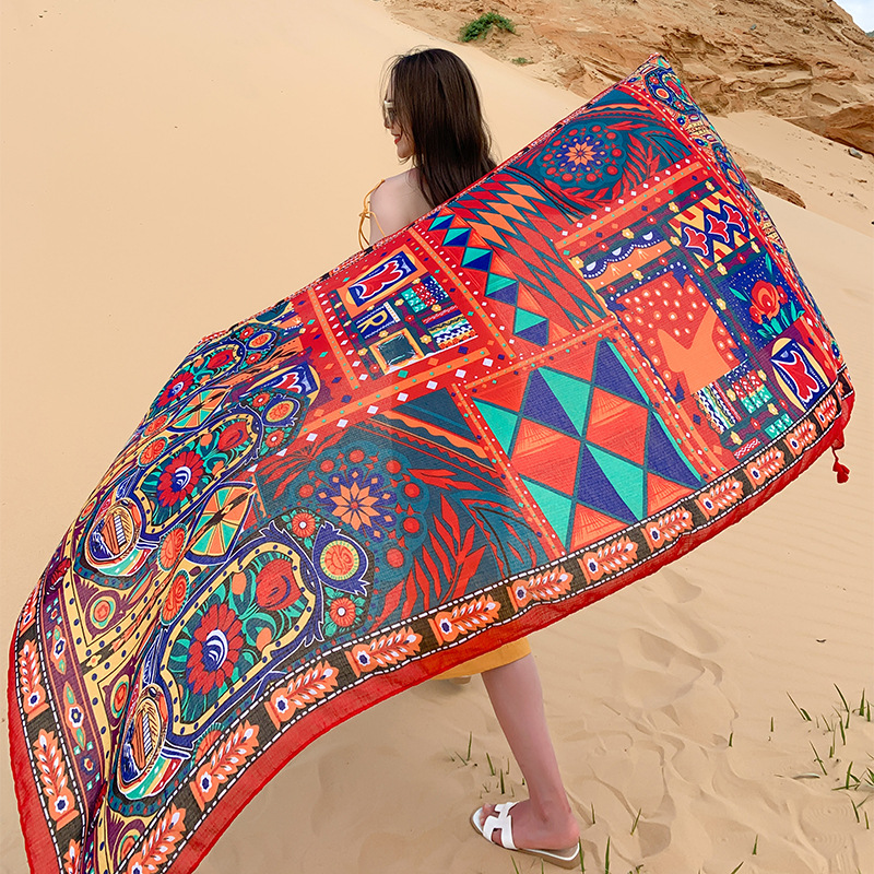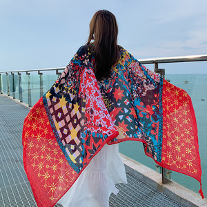 Multicolored Flower Pattern Shawl Sun-proof Scarf Mask