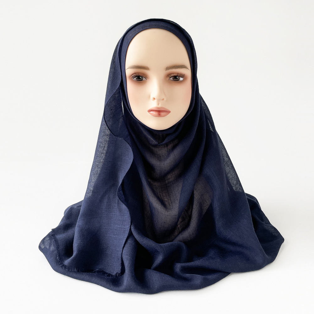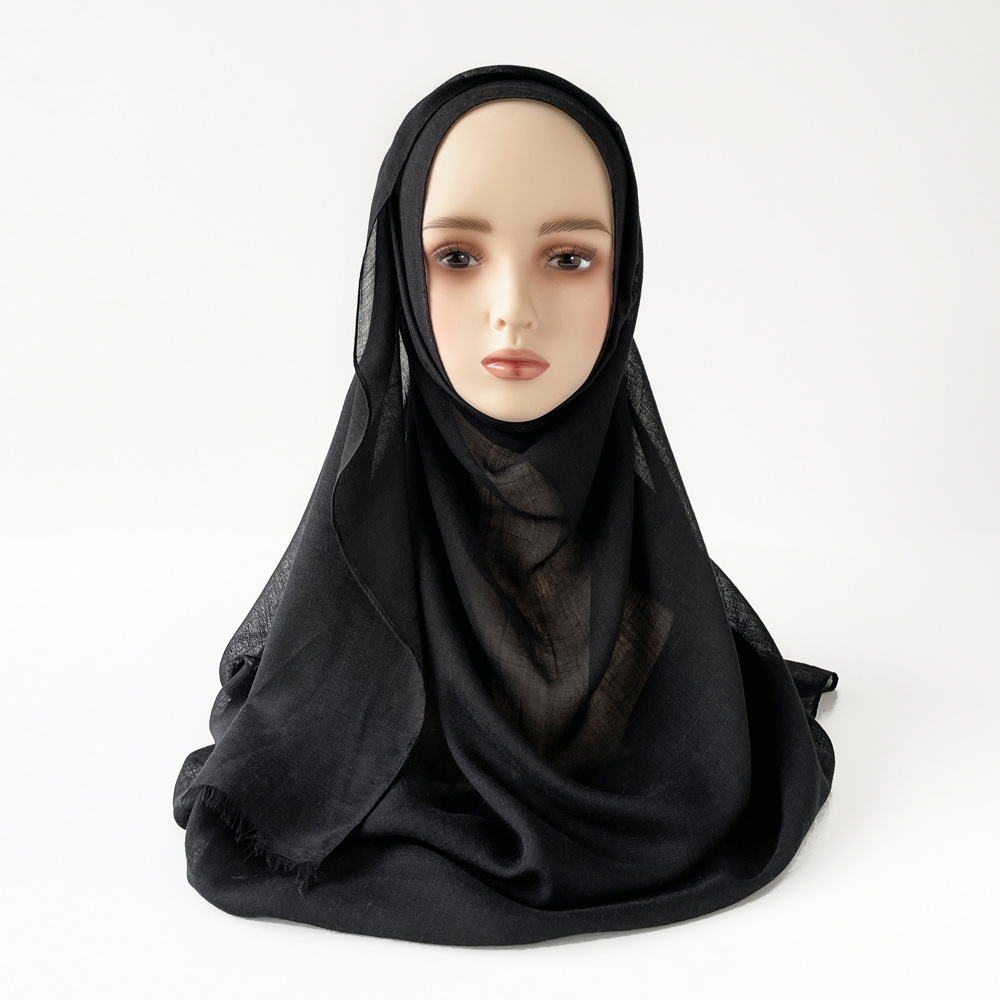 Muslim Kerchief Slub Cotton Scarf Tassel -