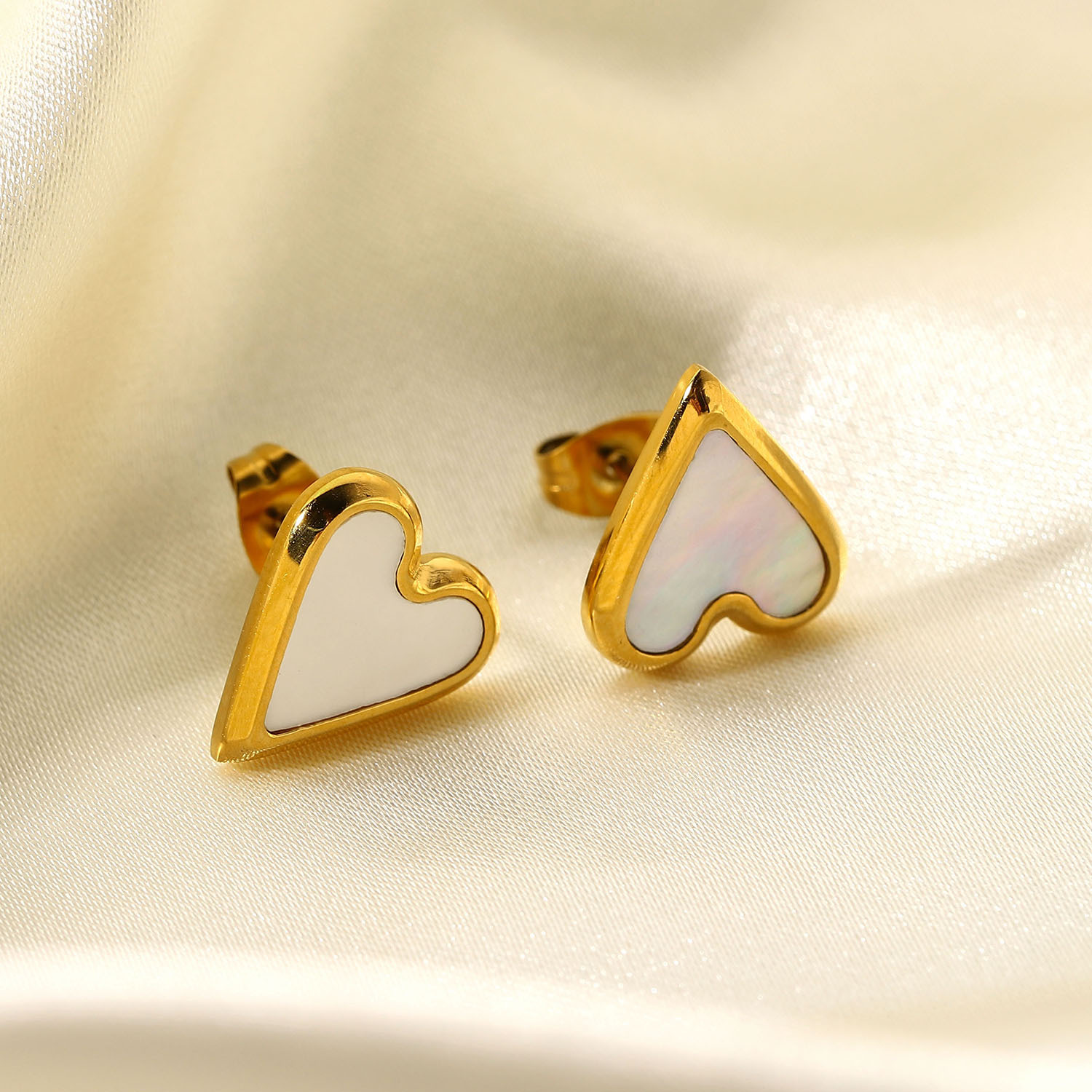 Natural Stone Black Shell Love Stud Earrings