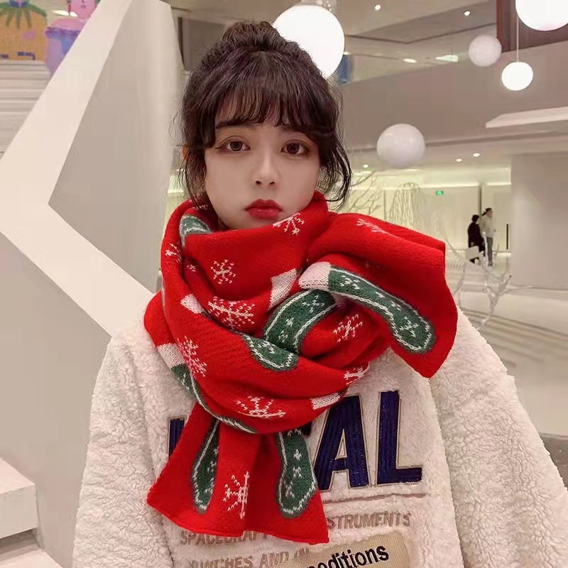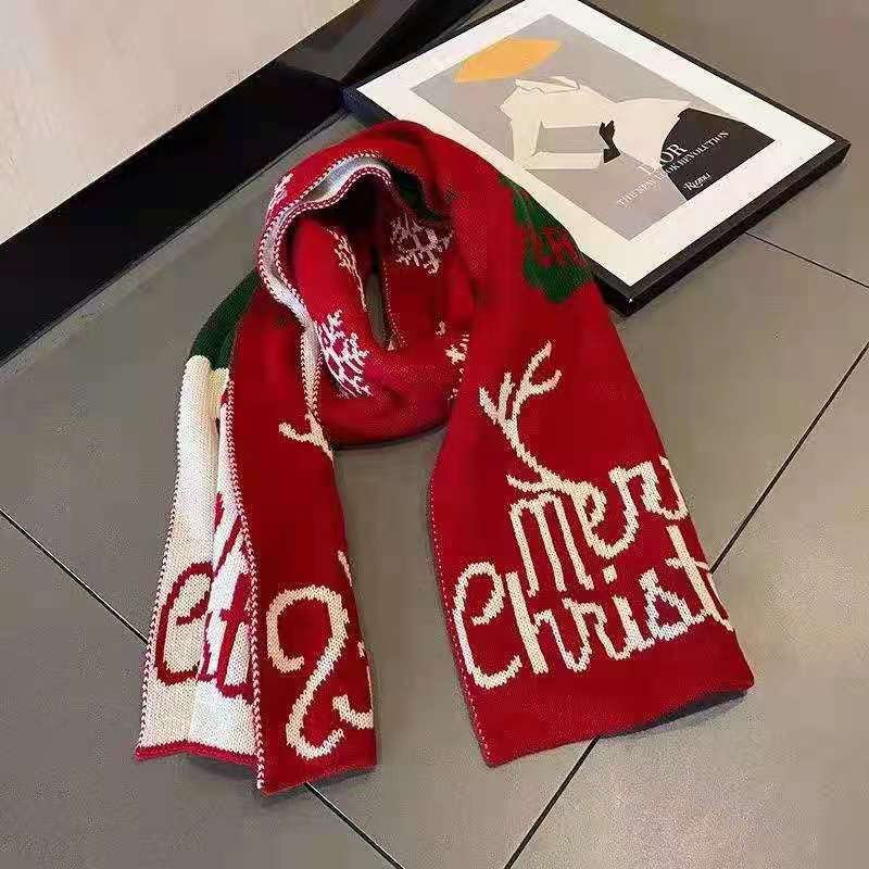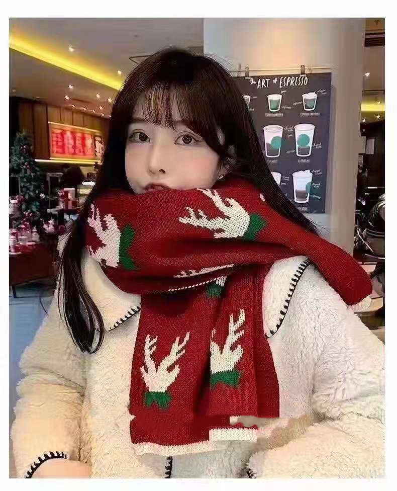 New Knitted Elk Christmas Scarf Fashion Versatile Warm Red Student Lover -