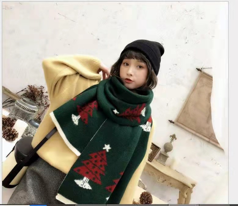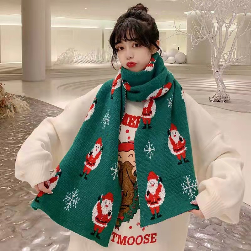New Knitted Elk Christmas Scarf Fashion Versatile Warm Red Student Lover