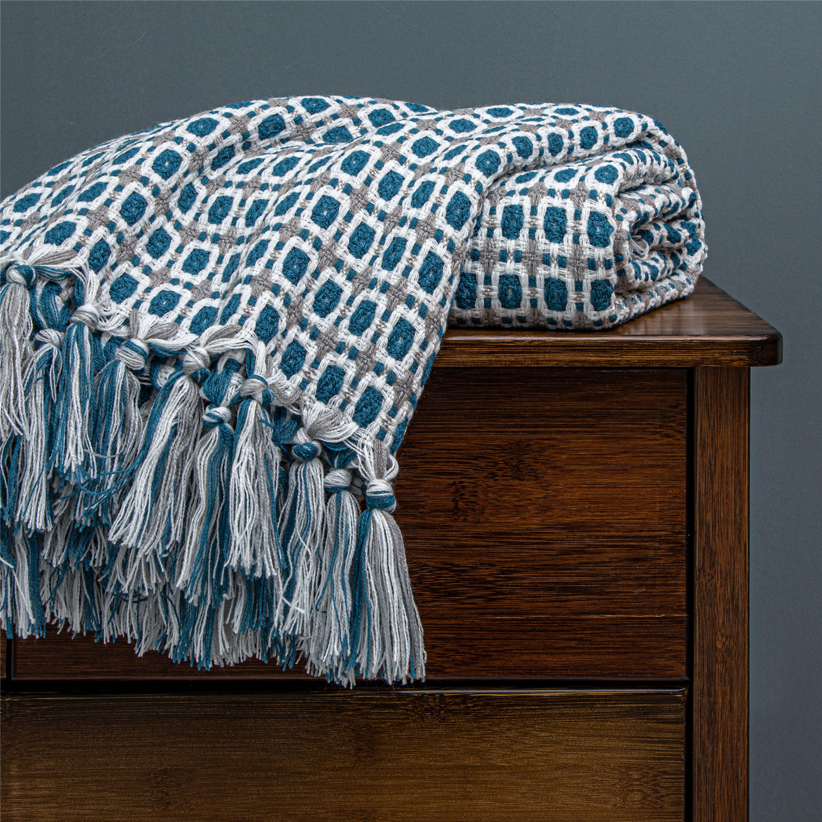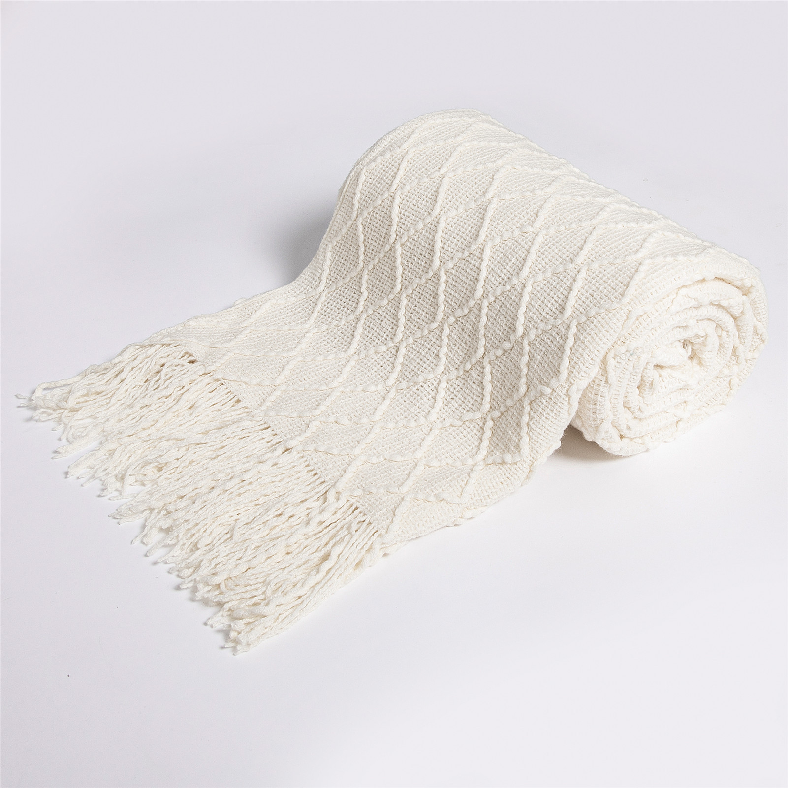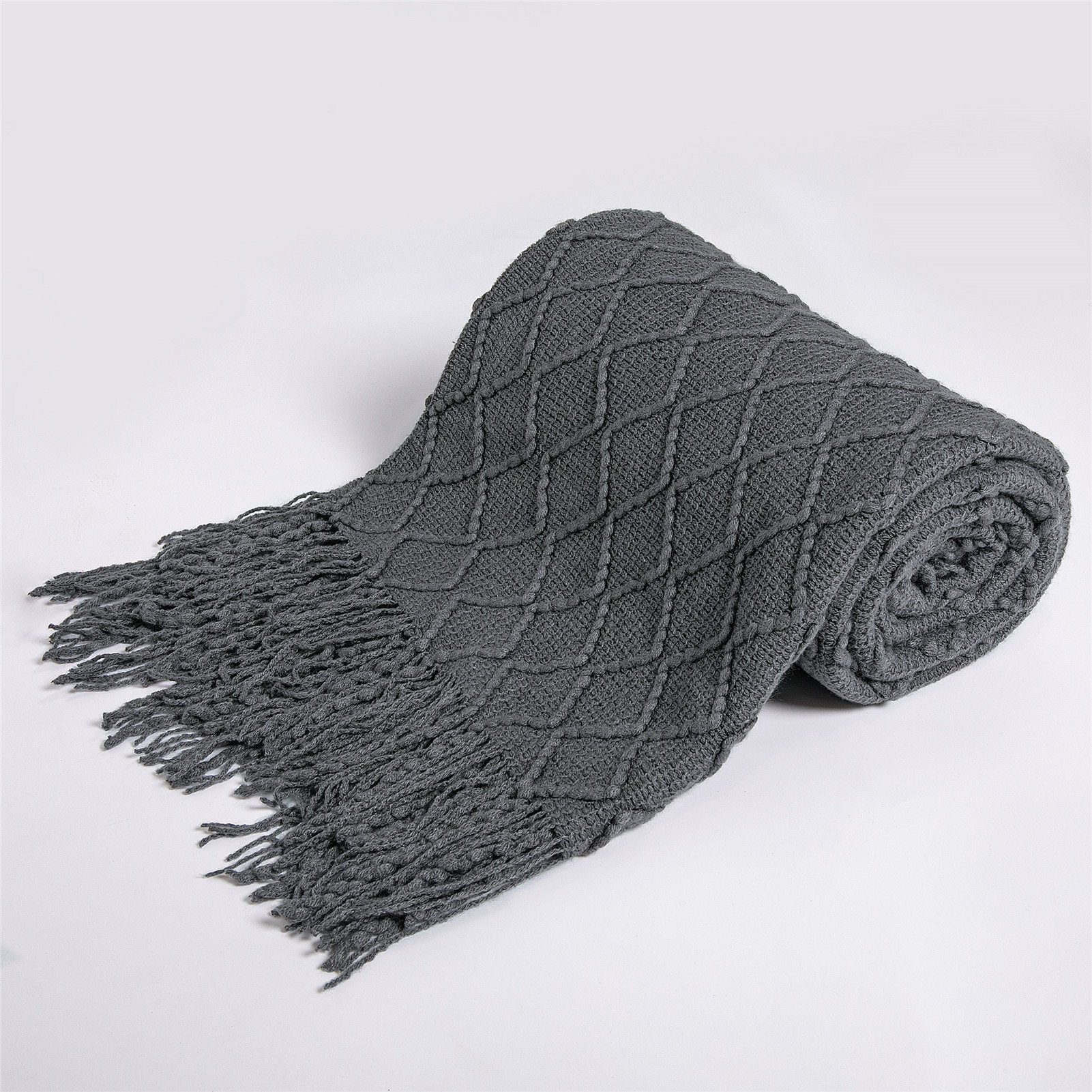 Nordic Pure Color Travel Nap Knitted Sofa Blanket Tassel -