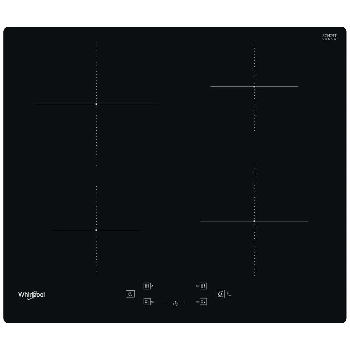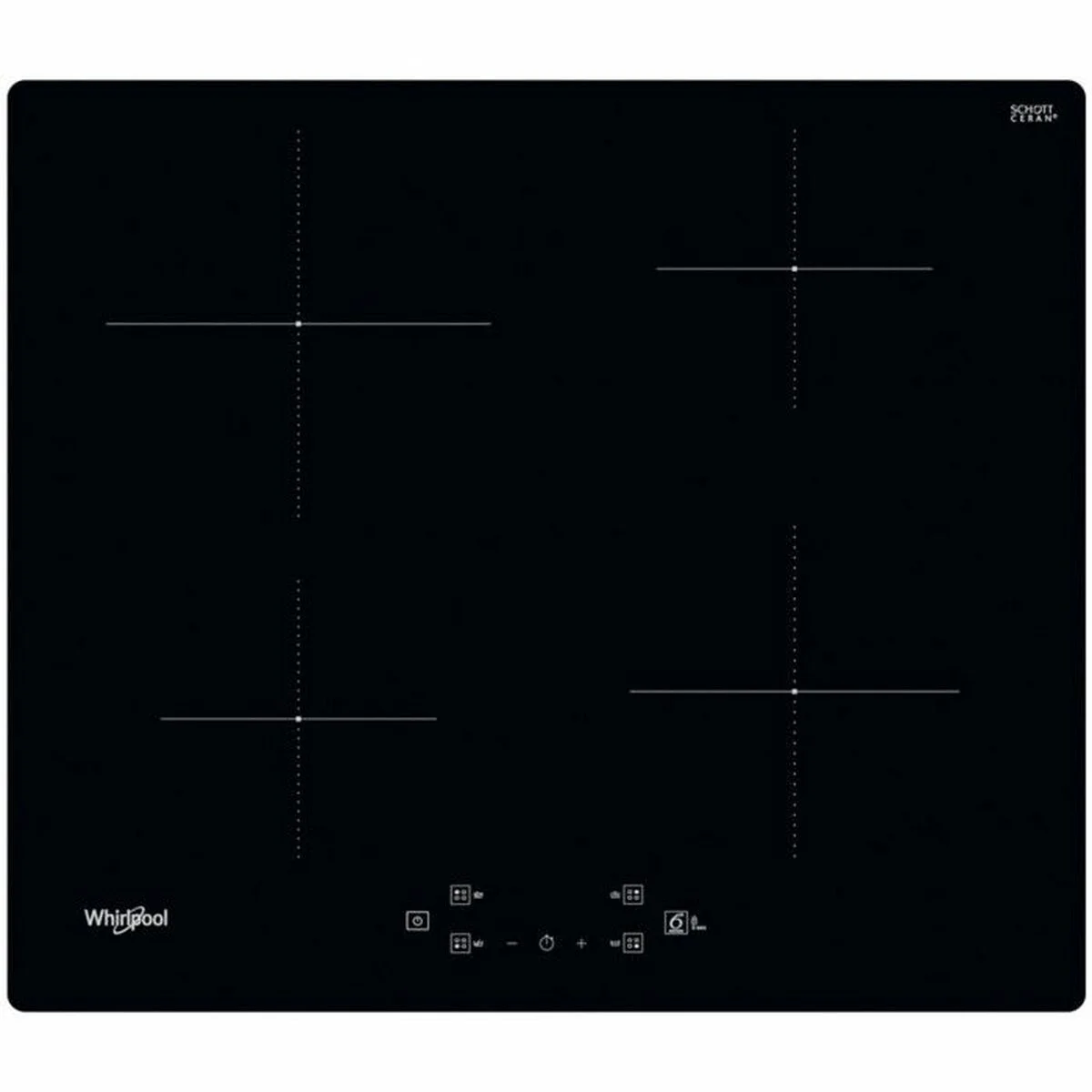 Whirlpool WS Q2160 NE. Color del producto: Negro, Tipo de instalación: Integrado, Anchura de los quemadores: 59 cm. Tipo de control: Tocar, Control de posición: Parte superior delantera. Carga conectada (eléctrica): 7200 W, Voltaje de entrada AC: 220 - 240 V, Frecuencia de entrada AC: 50 - 60 Hz. Ancho: 590 mm, Profundidad: 510 mm, Altura: 54 mm