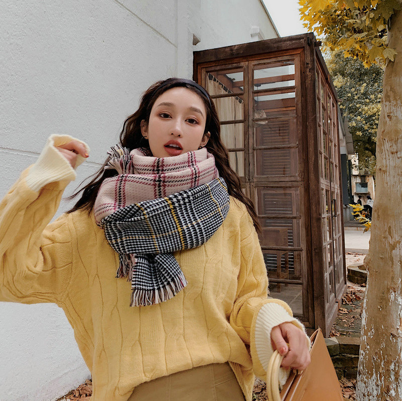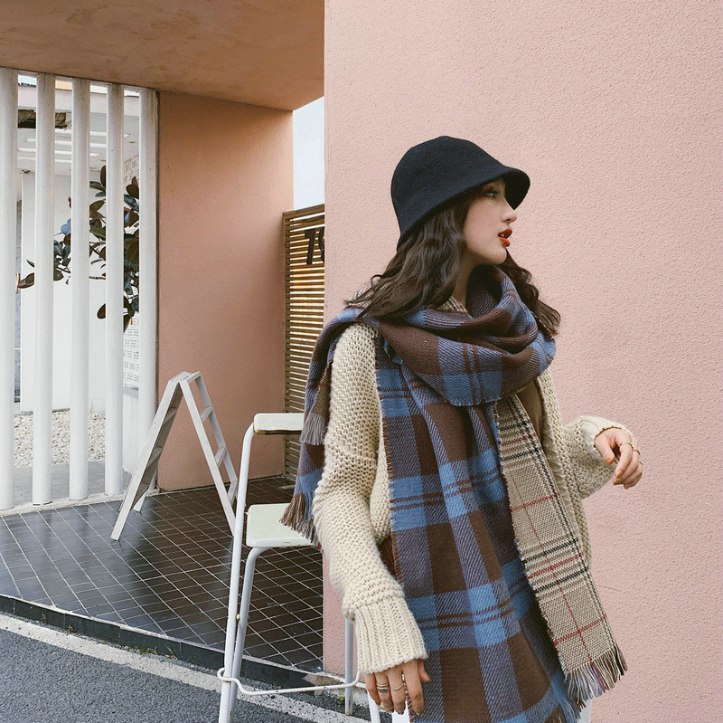 Plaid Scarf Versatile Warm Cashmere Reversible Shawl