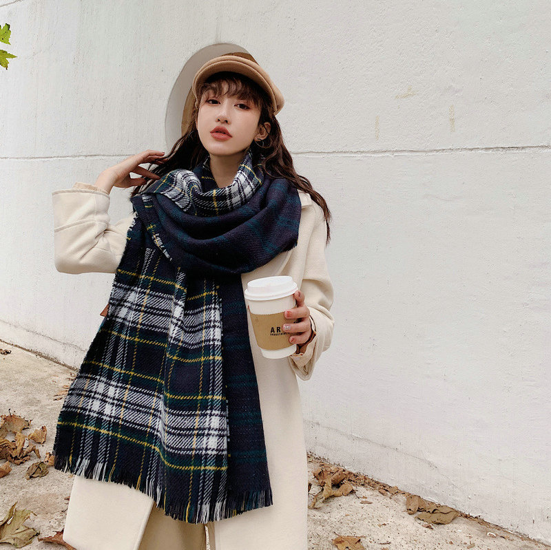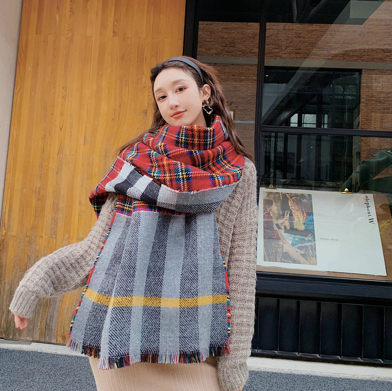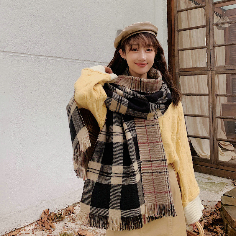 Plaid Scarf Versatile Warm Cashmere Reversible Shawl -