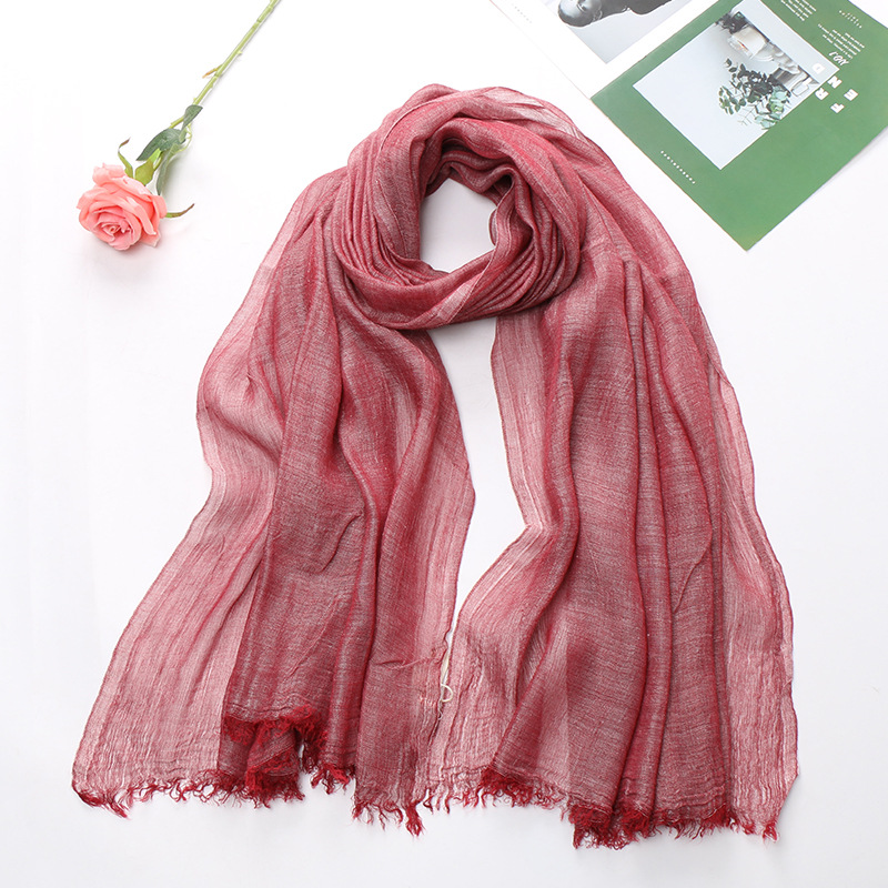 Popular Cotton And Linen Tie-dye Monochrome Women's Pleated Breathable Scarf