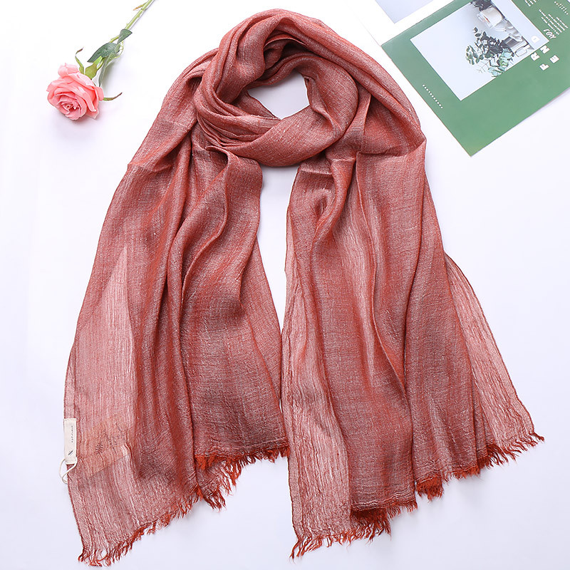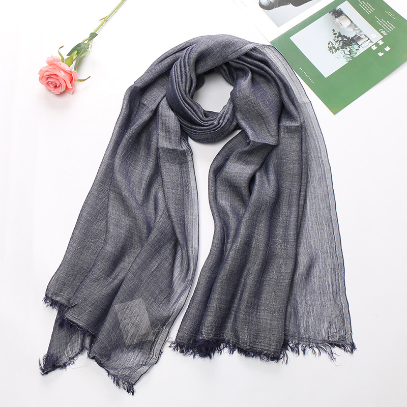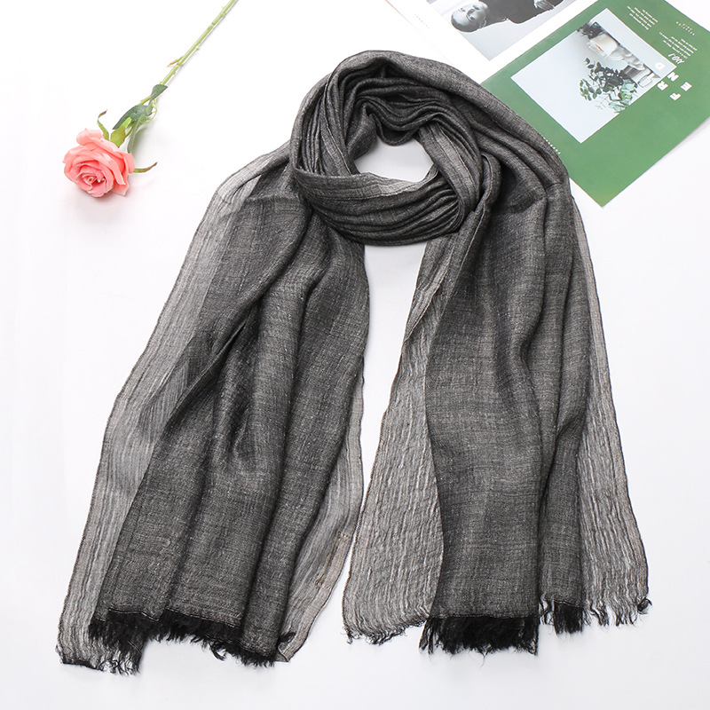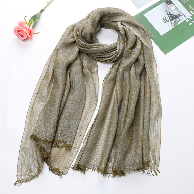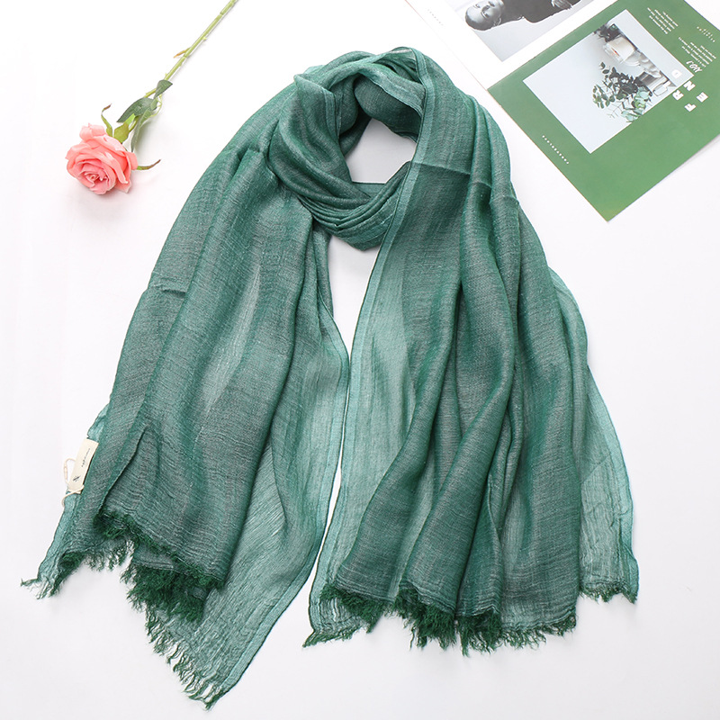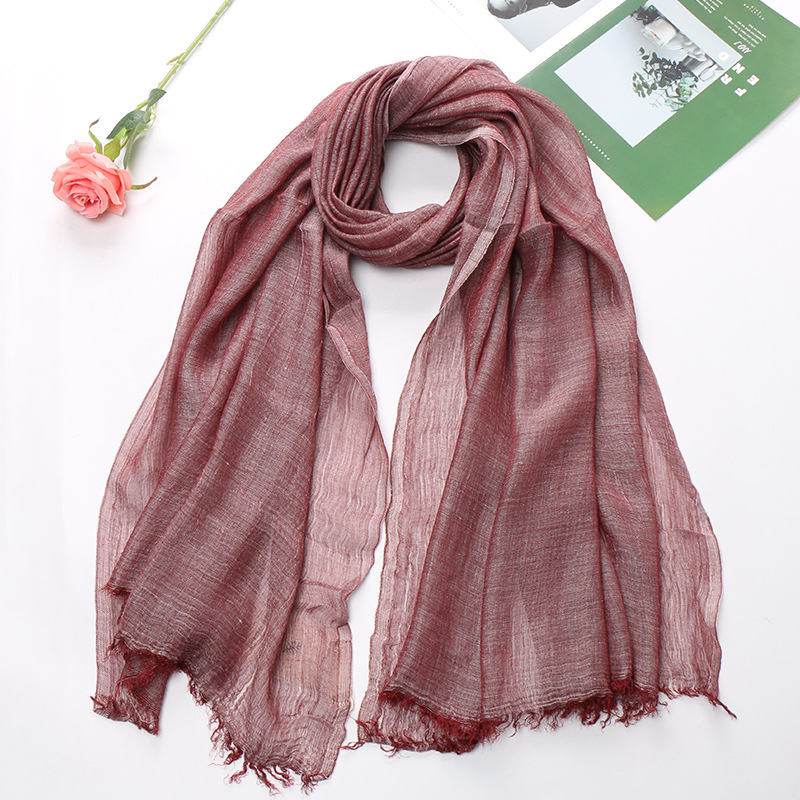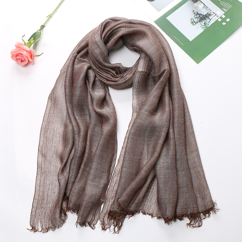 Popular Cotton And Linen Tie-dye Monochrome Women's Pleated Breathable Scarf -