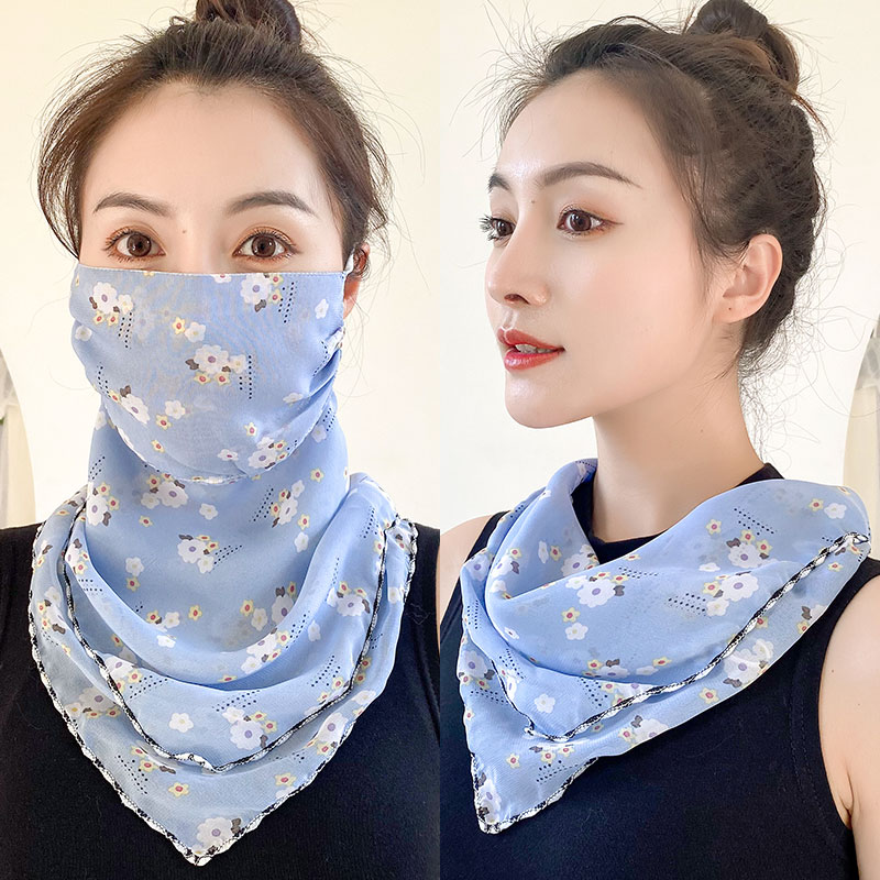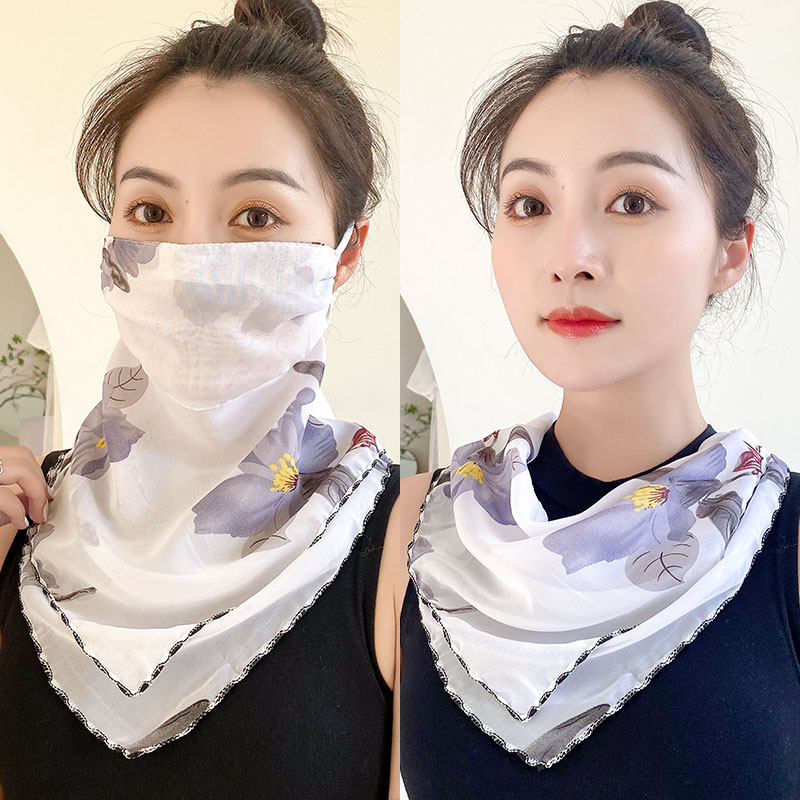 Protection Face Mask Silk Scarf Women'S Dual-Use Summer Thin Earrings Bib Set Neck Scarf -