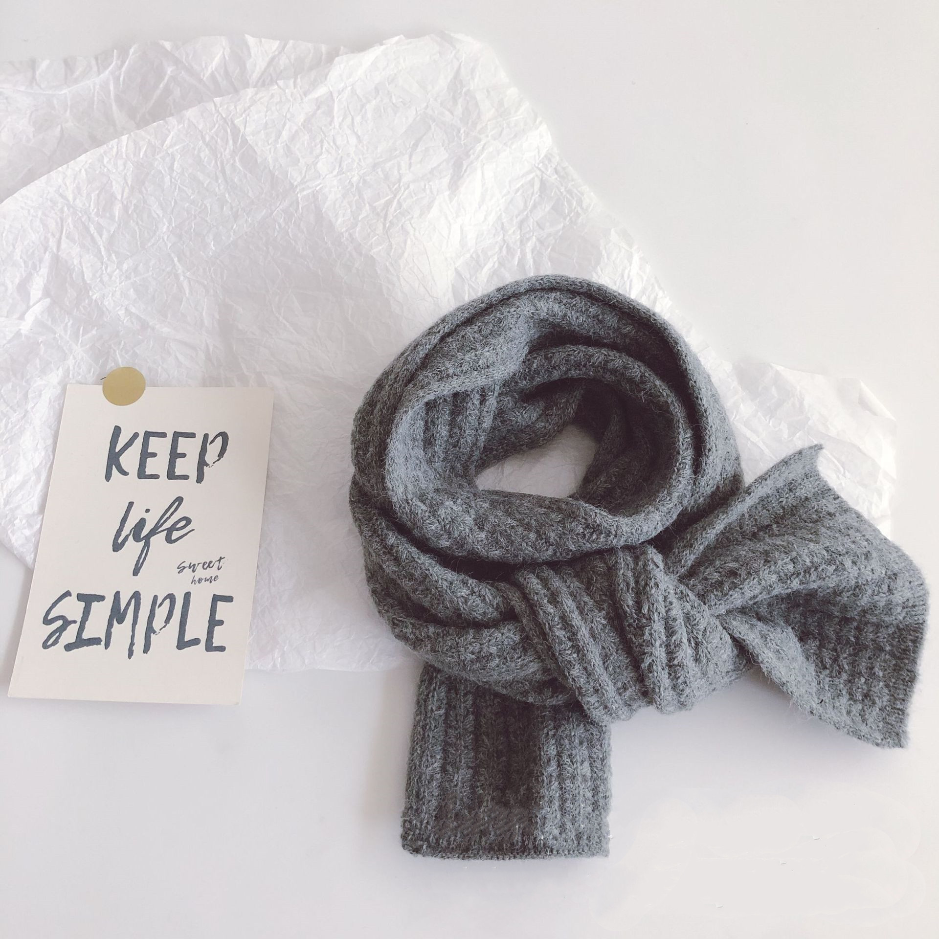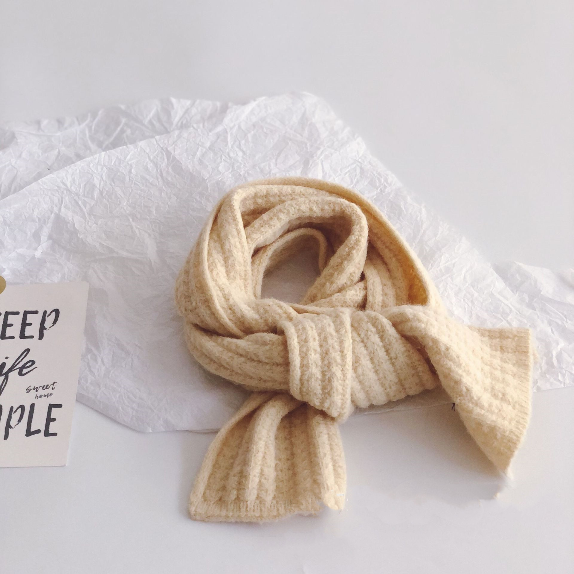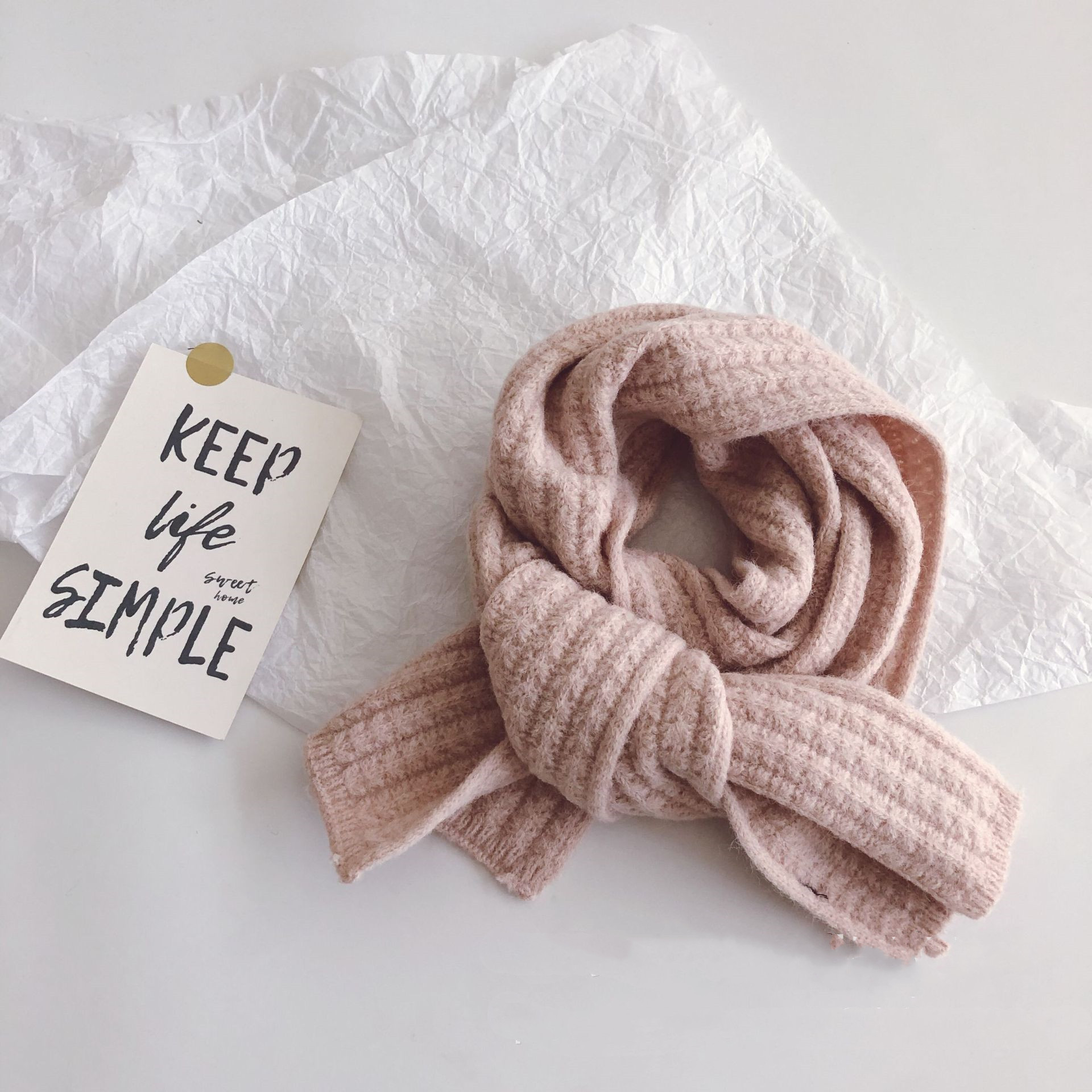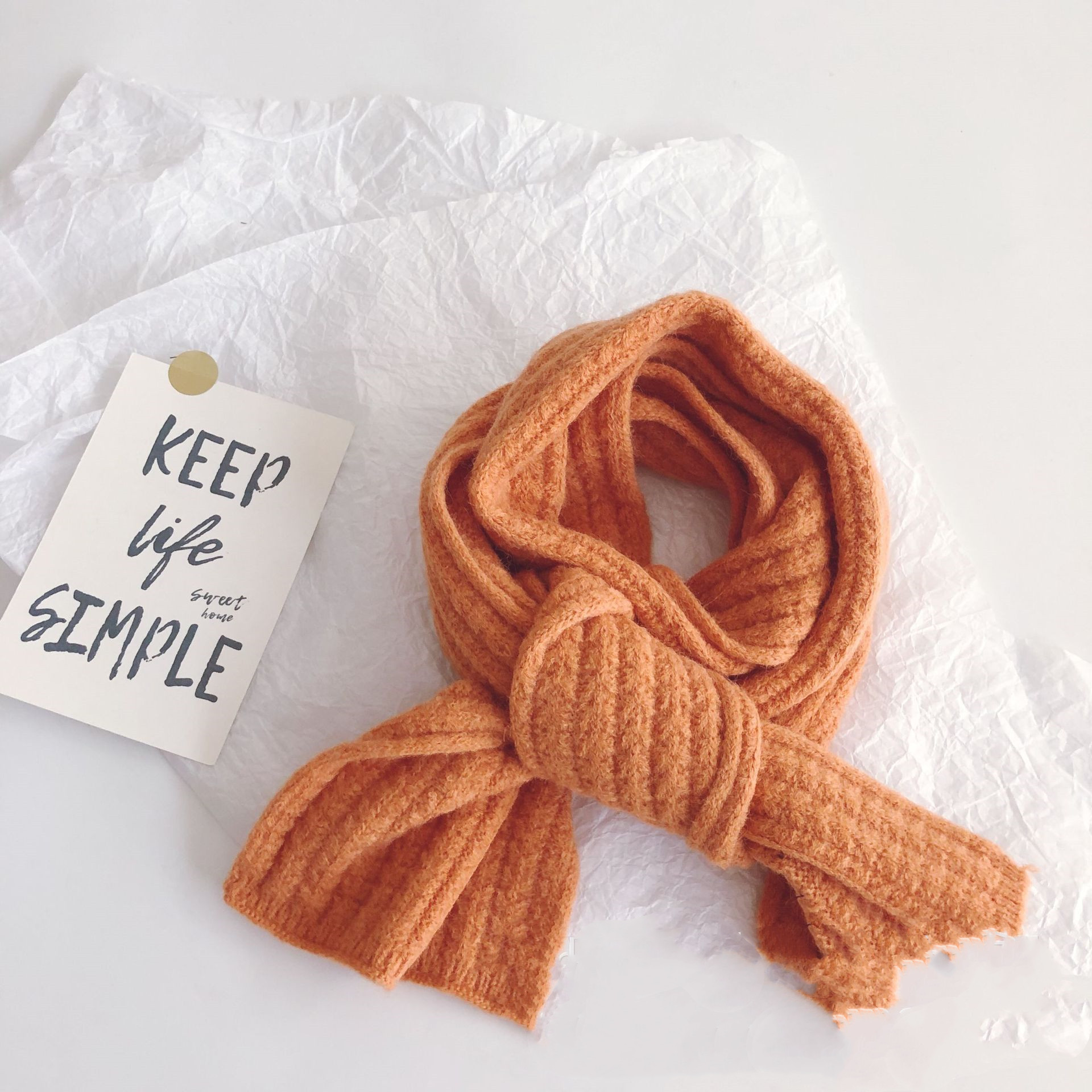 Pure Color Corn Kernels Children'S Lengthened Knitted Scarf -