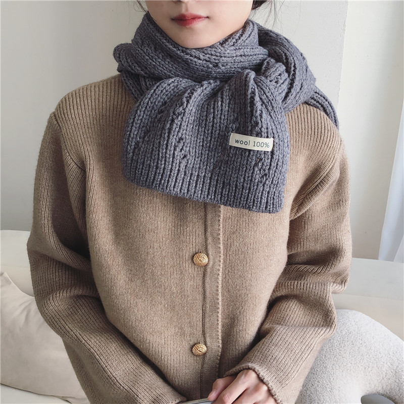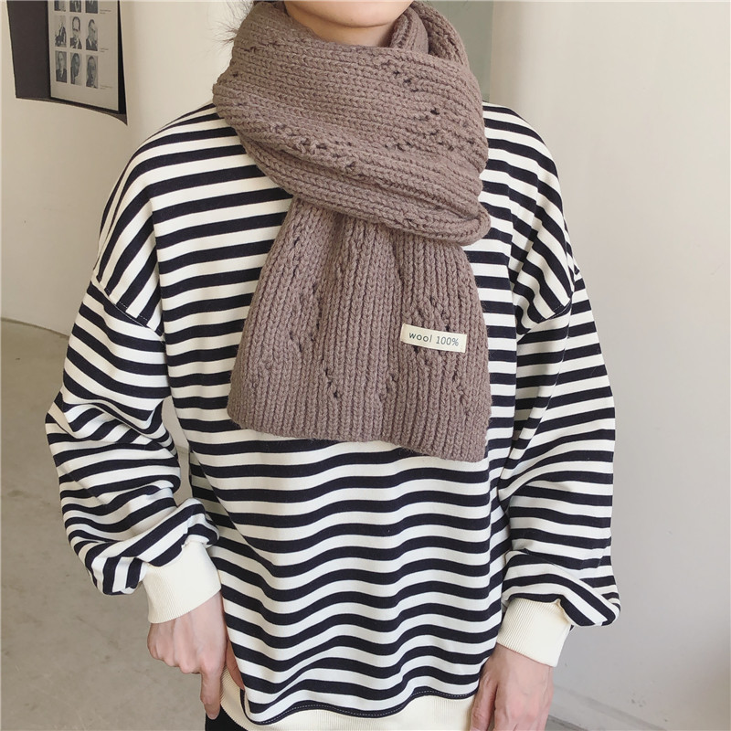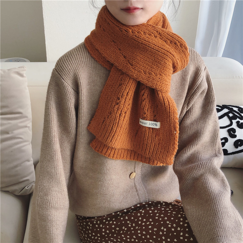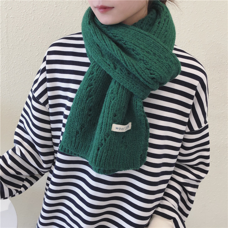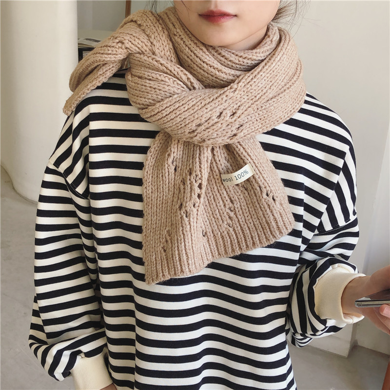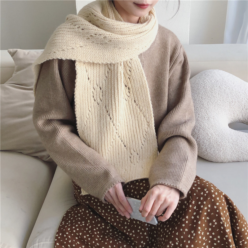 Pure Color Knitted Hollow Thick Warm Scarf