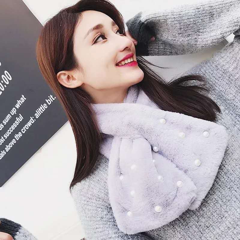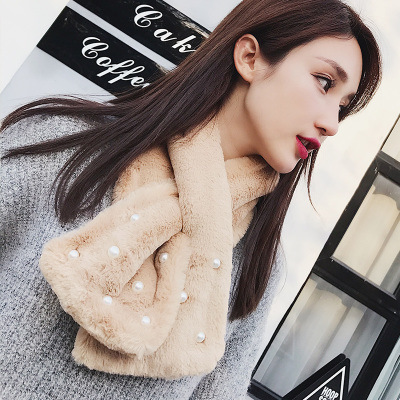 Rabbit Hair Imitation Pearl Scarf Thickened Warm Rabbit Hair Collar