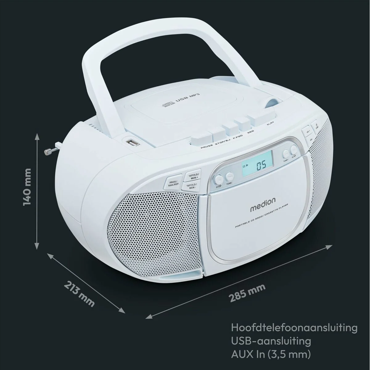 MEDION LIFE E66476. Potencia estimada RMS: 4 W. Bandas de radio soportadas: FM, PLL. Tipo de visualizador: LCD. Auriculares: 3,5 mm. Color del producto: Azul