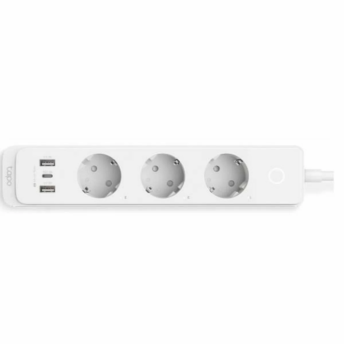 TP-Link Tapo P300. Cantidad de salidas AC: 3 salidas AC, Tipo de enchufe: Type F (CEE 7/4), Longitud de cable: 1,5 m. Potencia máx. de entrada: 2300 W, Voltaje de entrada AC: 220 - 240 V, Frecuencia de entrada AC: 50 - 60 Hz. Ancho: 55 mm, Profundidad: 40 mm, Altura: 268 mm. Wi-Fi estándares: 802.11b, 802.11g, Wi-Fi 4 (802.11n), Tipo de puerto USB: USB Type A/USB Type-C. Cantidad por paquete: 1 pieza(s)
