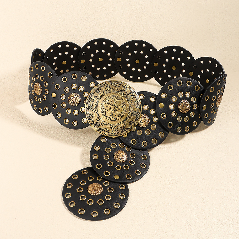 Retro Personality Men's And Women's Belts Exaggerated Hip Hop Punk Metal Cutout Round Fashion Belts