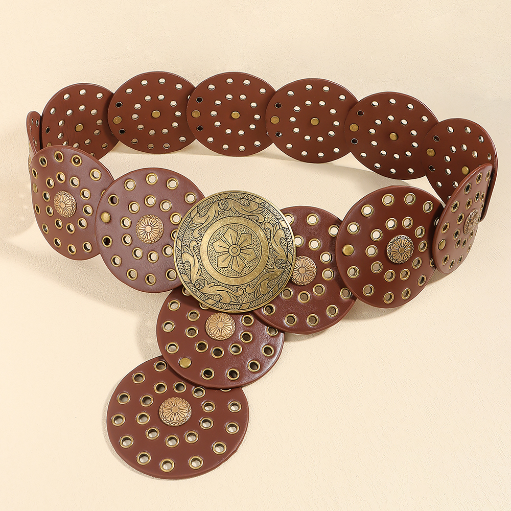 Retro Personality Men's And Women's Belts Exaggerated Hip Hop Punk Metal Cutout Round Fashion Belts -