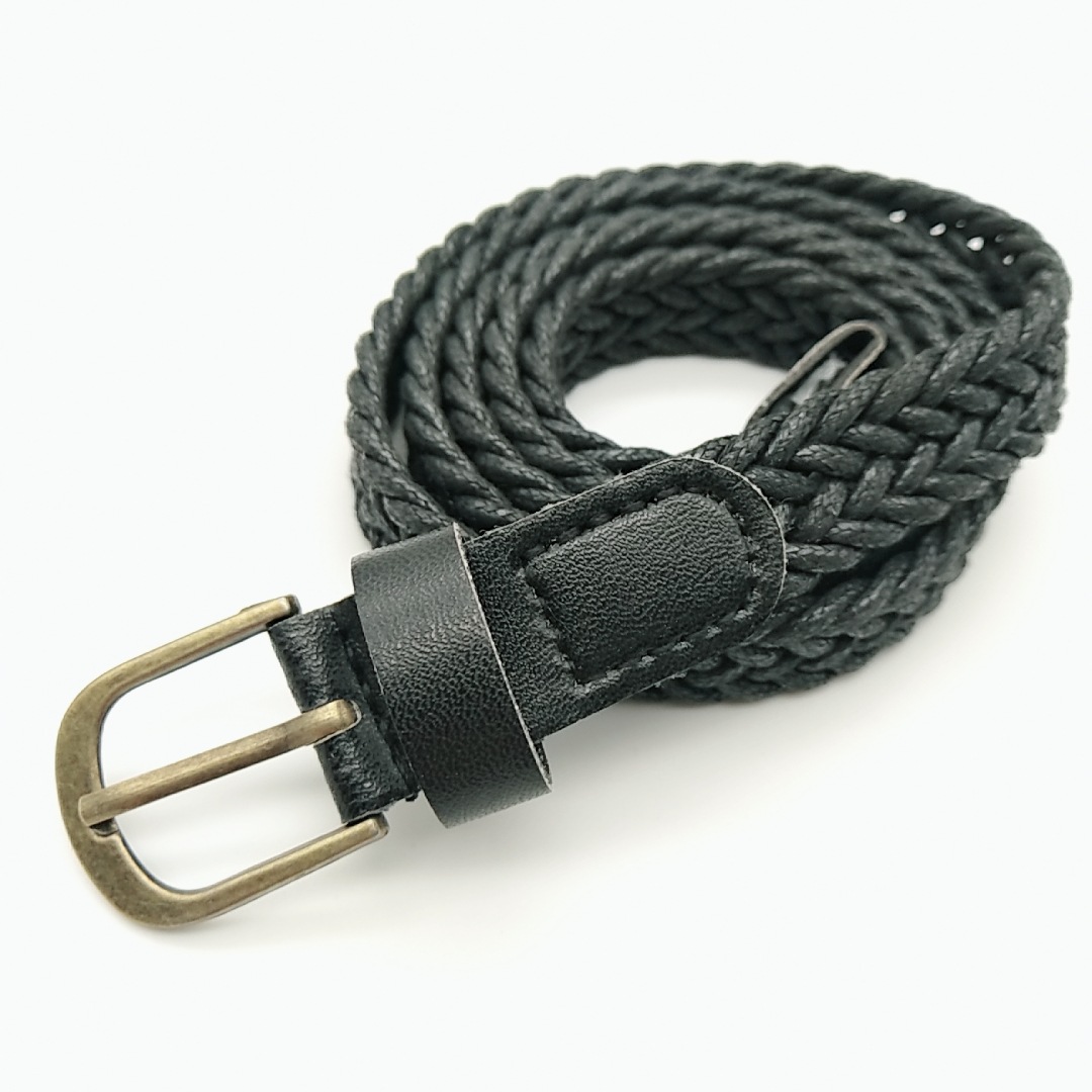 Retro Style Wax Rope Clothing Woven Belt Pu Bronze Alloy Pin Buckle Fashion Machine Woven Women's Belt