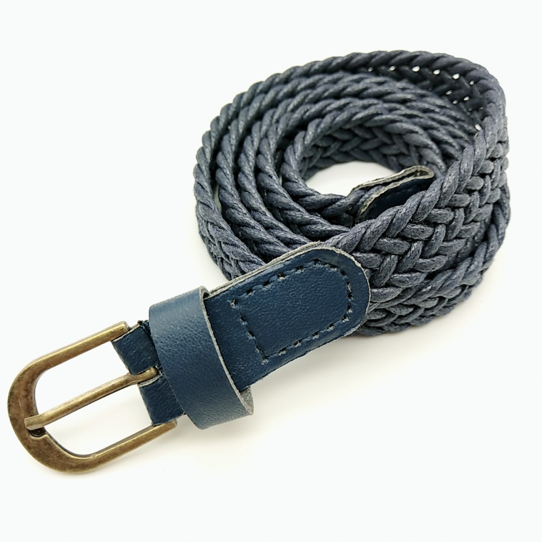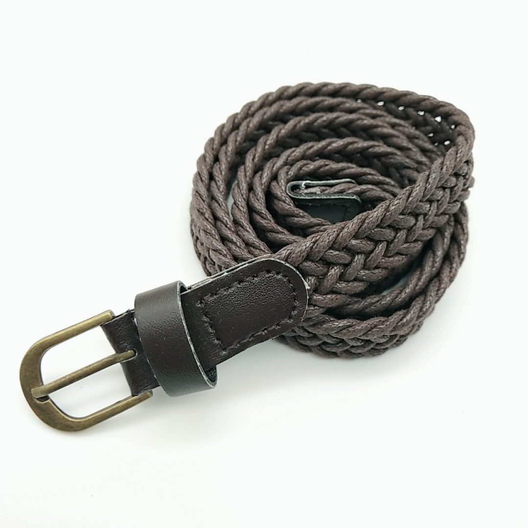 Retro Style Wax Rope Clothing Woven Belt Pu Bronze Alloy Pin Buckle Fashion Machine Woven Women's Belt -