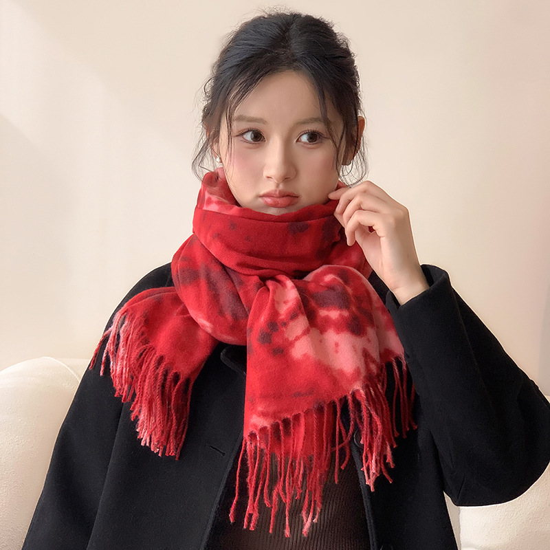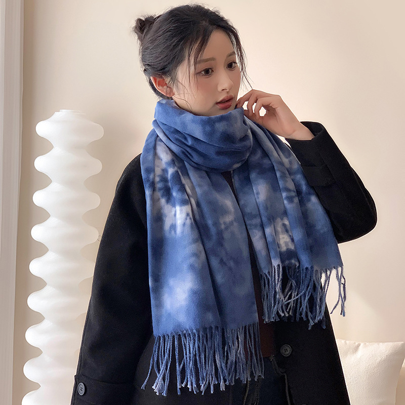 Retro Tie-dye Printing Super Soft Artificial Cashmere Scarf
