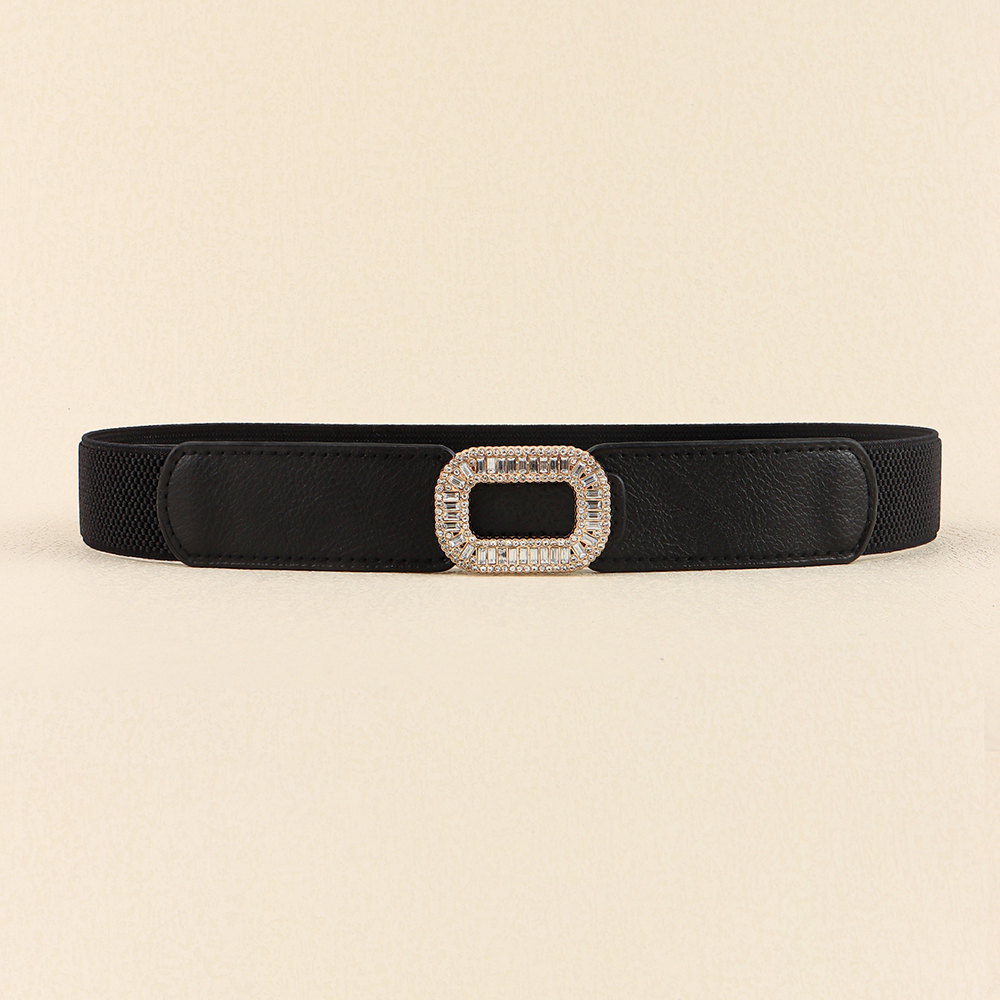 Rhinestone Inlaid Belt Women's Black White All-in-one Elastic Simple Elastic Belt Cinched Waist Suit Coat Waist Decoration