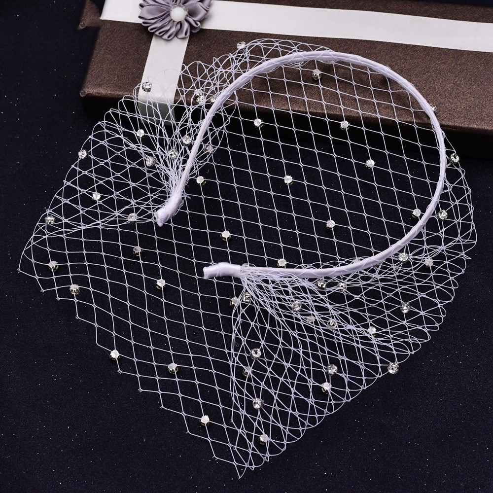 Rhinestone Veil And Mesh Headband, Black And White Bridal Headwear -