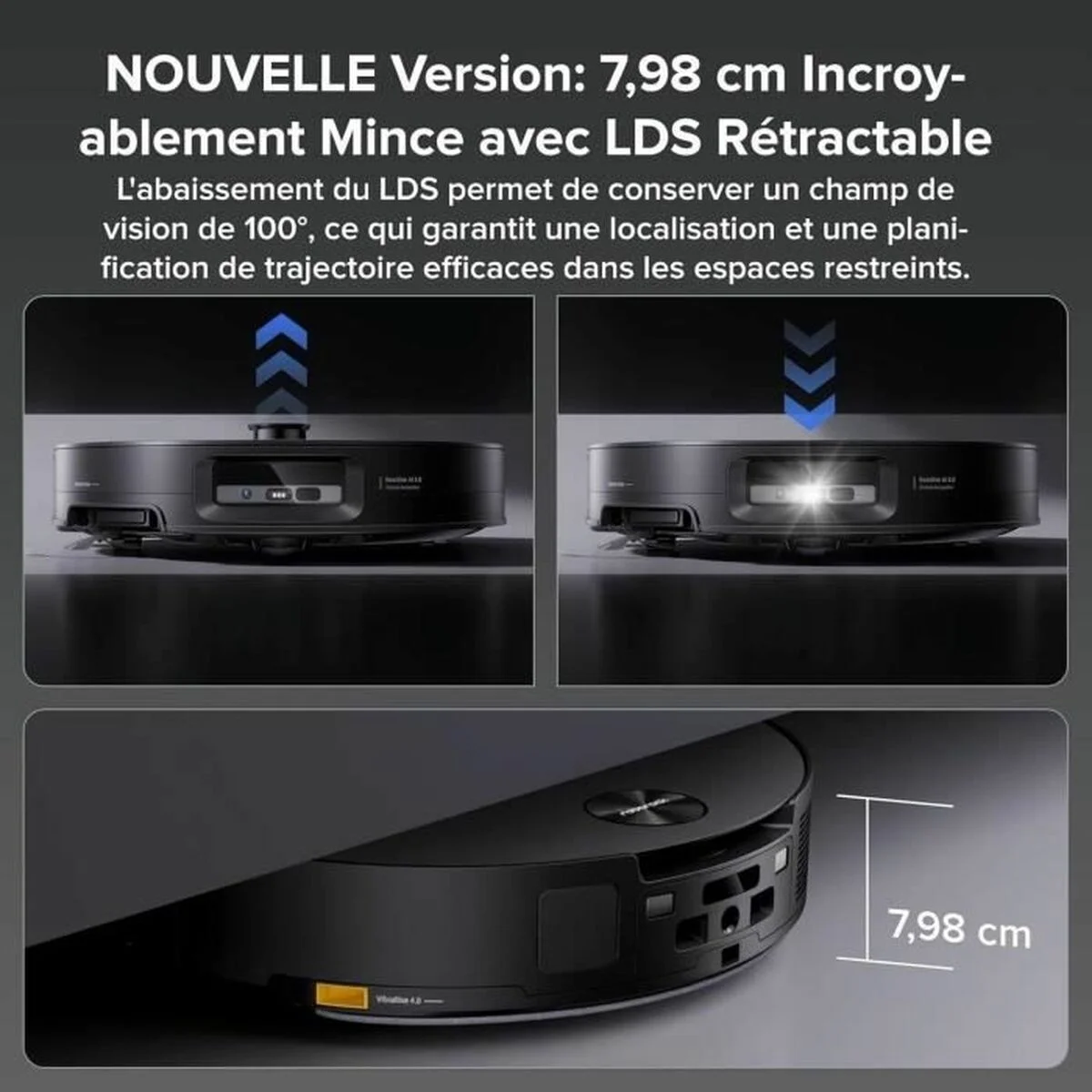 Roborock Saros 10. Tipo de depósito: Sin bolsa, Color del producto: Negro, Forma: Alrededor. Capacidad de polvo (total): 0,27 L, Nivel de ruido: 64 dB, Capacidad de reservorio de agua: 0,07 L. Capacidad de batería: 6400 mAh, Tiempo de funcionamiento: 220 min, Consumo energético: 65 W. Altura: 93,5 mm, Ancho: 350 mm, Profundidad: 353 mm